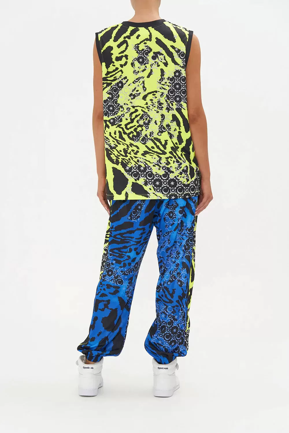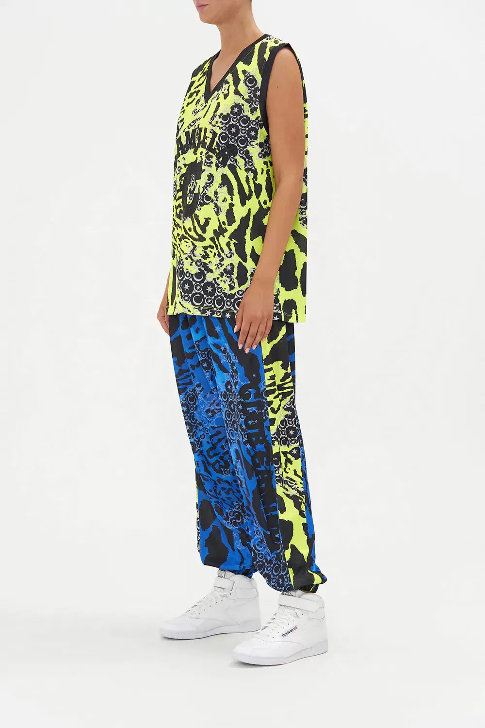 The Kat Kingdom Active Basketball Top steals our gaze with a symphony of animal print wrapped in the deepest of vibrant neon hues, our namesake CAMILLA initalling and star-dipped details. Crafted from a recycled polyester that keeps Mother Earth in mind, this luxury basketball top is home to a deep v neckline that meets wide straps at the décolletage, an effortlessly relaxed silhouette that falls to the hip and scintillating hand-placed crystal embellishment.