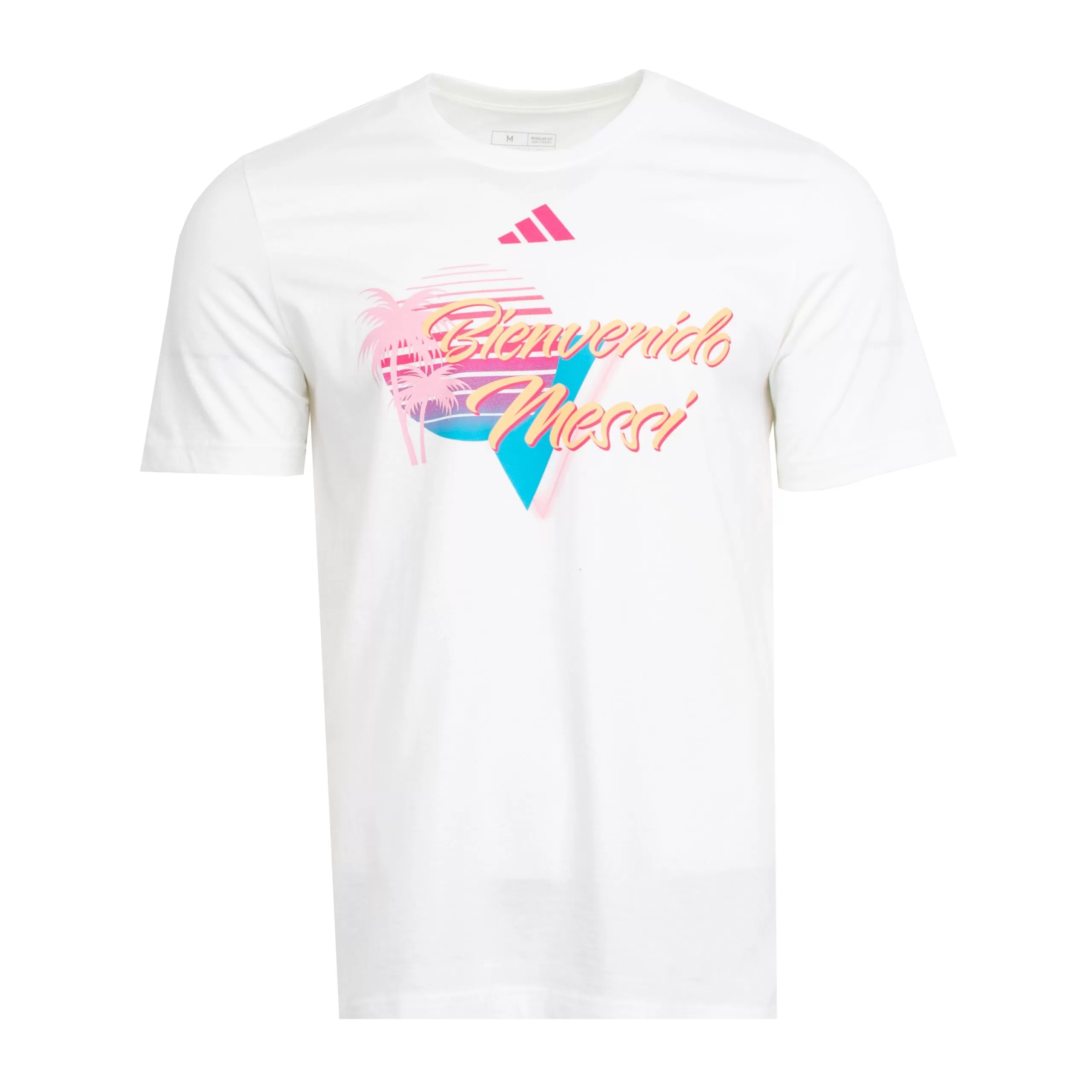 Join in the revelries as we cheer on one of the greatest soccer players ever with the Messi Bienvenido A Miami T-Shirt from adidas. It’s a playful and stylish addition to your wardrobe, designed with vibrant colors inspired by South Florida. Bold graphics celebrate Lionel Messi’s arrival in Miami, proudly showcasing who runs the show in the MLS.
