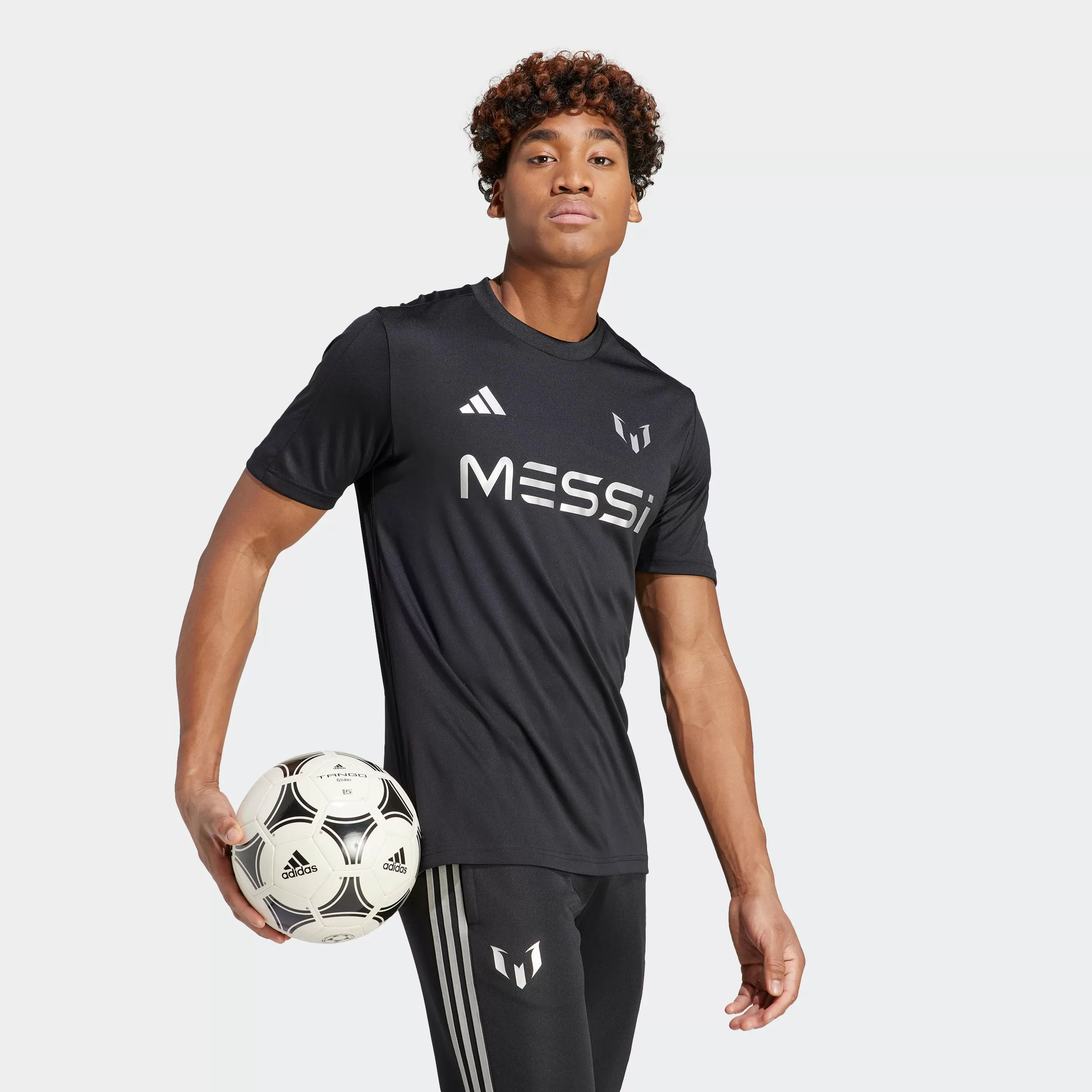 Paying tribute to the perfect team. Part of a collection inspired by adidas Messi footwear, this adidas soccer training jersey shows off heat-transferred versions of the Argentine’s world-famous name and logo. Moisture-absorbing AEROREADY makes it ideal for taking onto the training pitch.