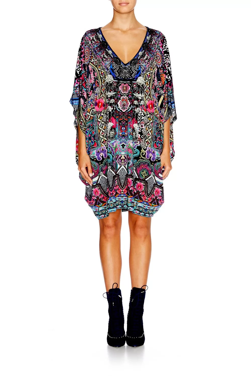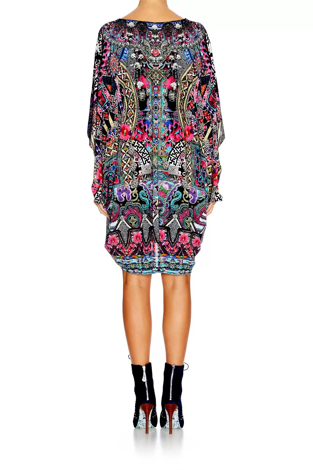 Bold, bohemian patterning meets capacious, oversized styling with the Bat Sleeve Dress in our striking print. Inspired by the artisinal pride of traditional Miao women, this relaxed fitting piece creates a billowing silhouette and is the perfect addition to your luxury resort-wear wardrobe. Wear as a beach coverup during the day or team with gladiator style and a vibrant for a whimsical evening vibe.