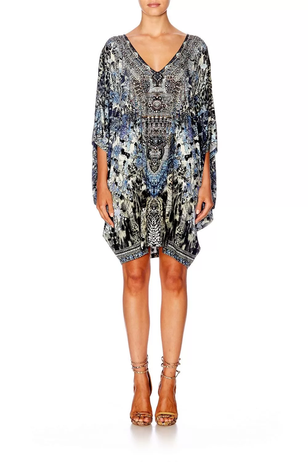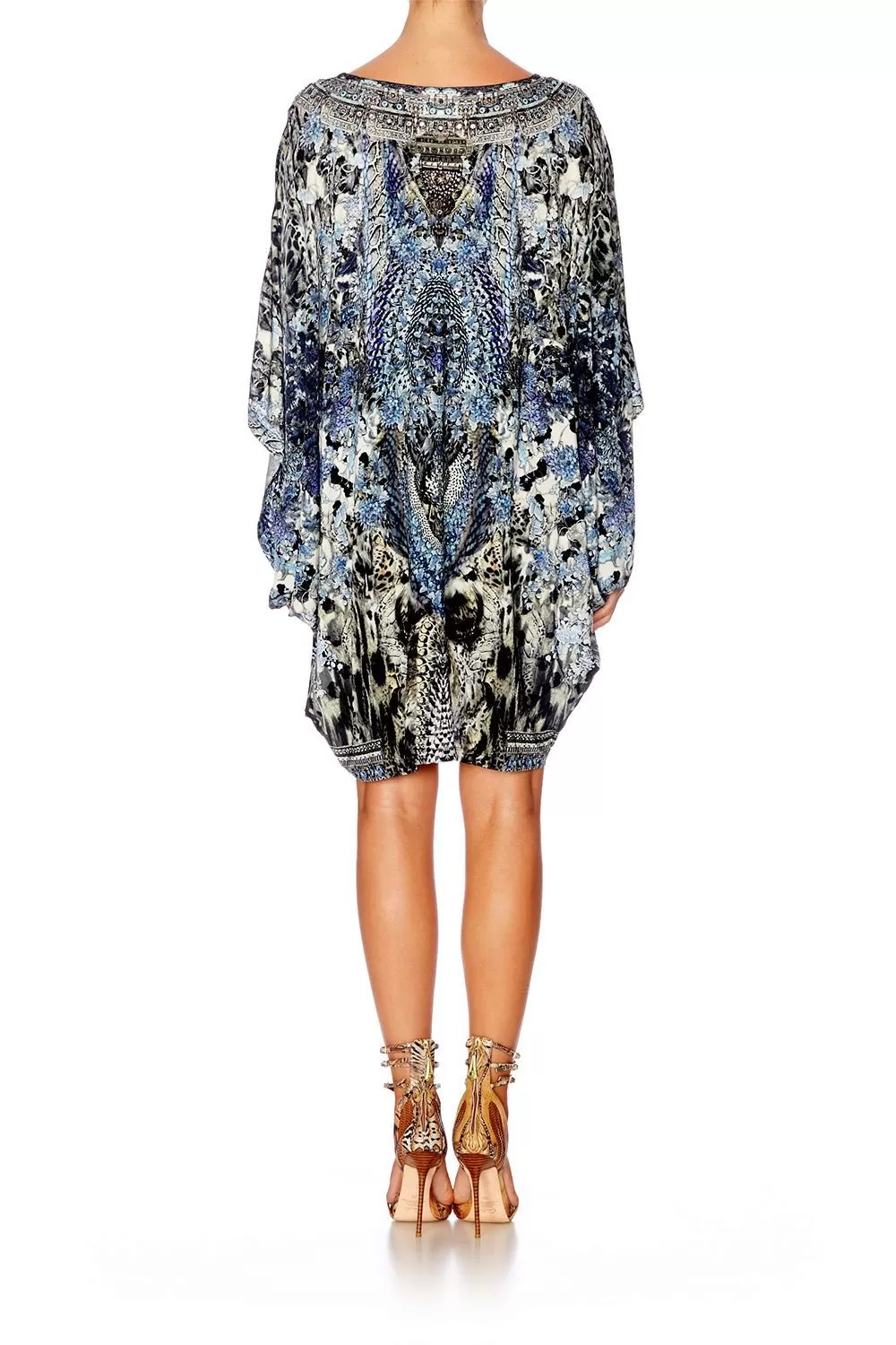 Bold, feminine patterning meets capacious, oversized styling with the Bat Sleeve Dress in our striking print. Inspired by tales of the Yellow Emperor’s feisty, fearless wife; this relaxed fitting piece creates a billowing silhouette and is the perfect addition to your luxury resort wear wardrobe. Wear as a beach coverup during the day or team with gladiator style and a vibrant for a whimsical evening look that you’ll feel comfortable in all night long.