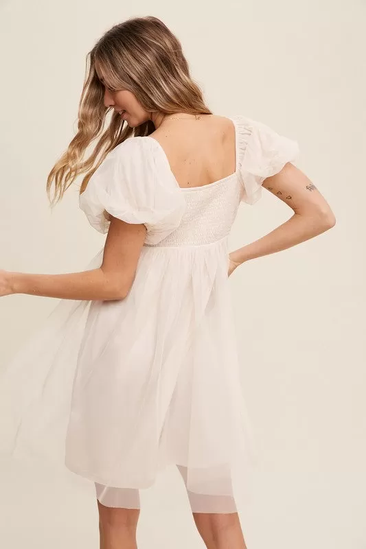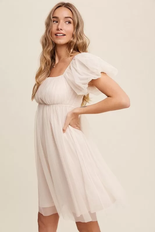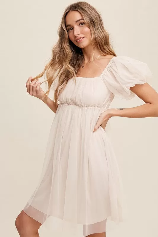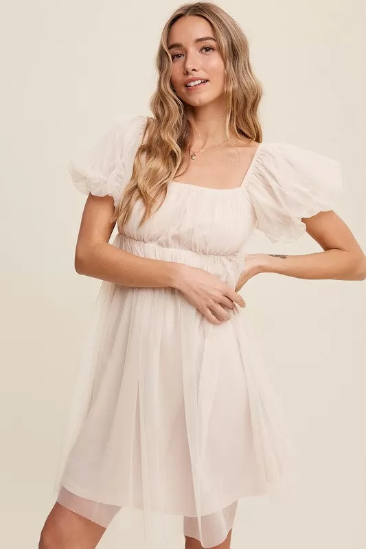 Be My Fairytale Mesh Babydoll Dress- Cream
