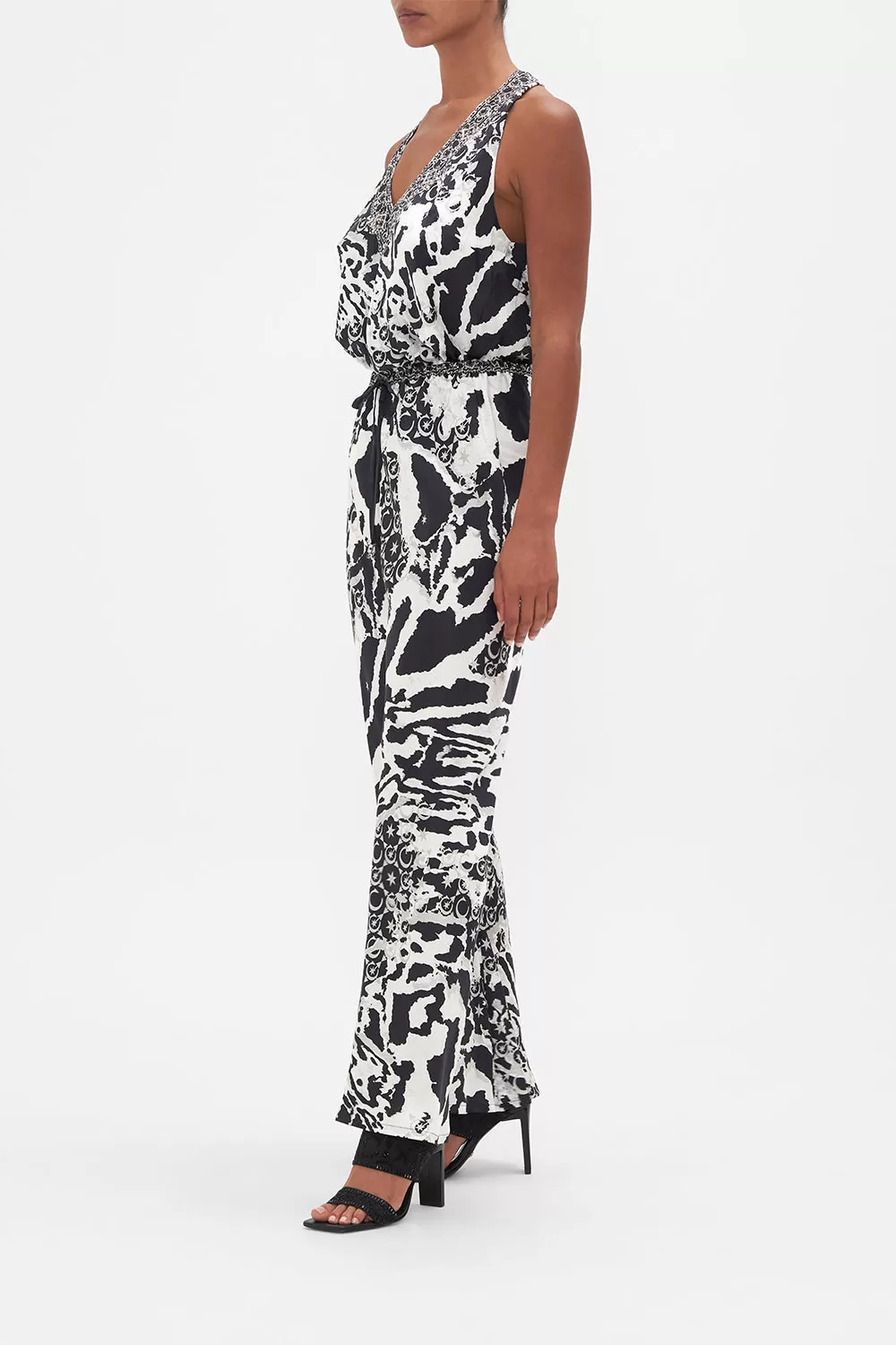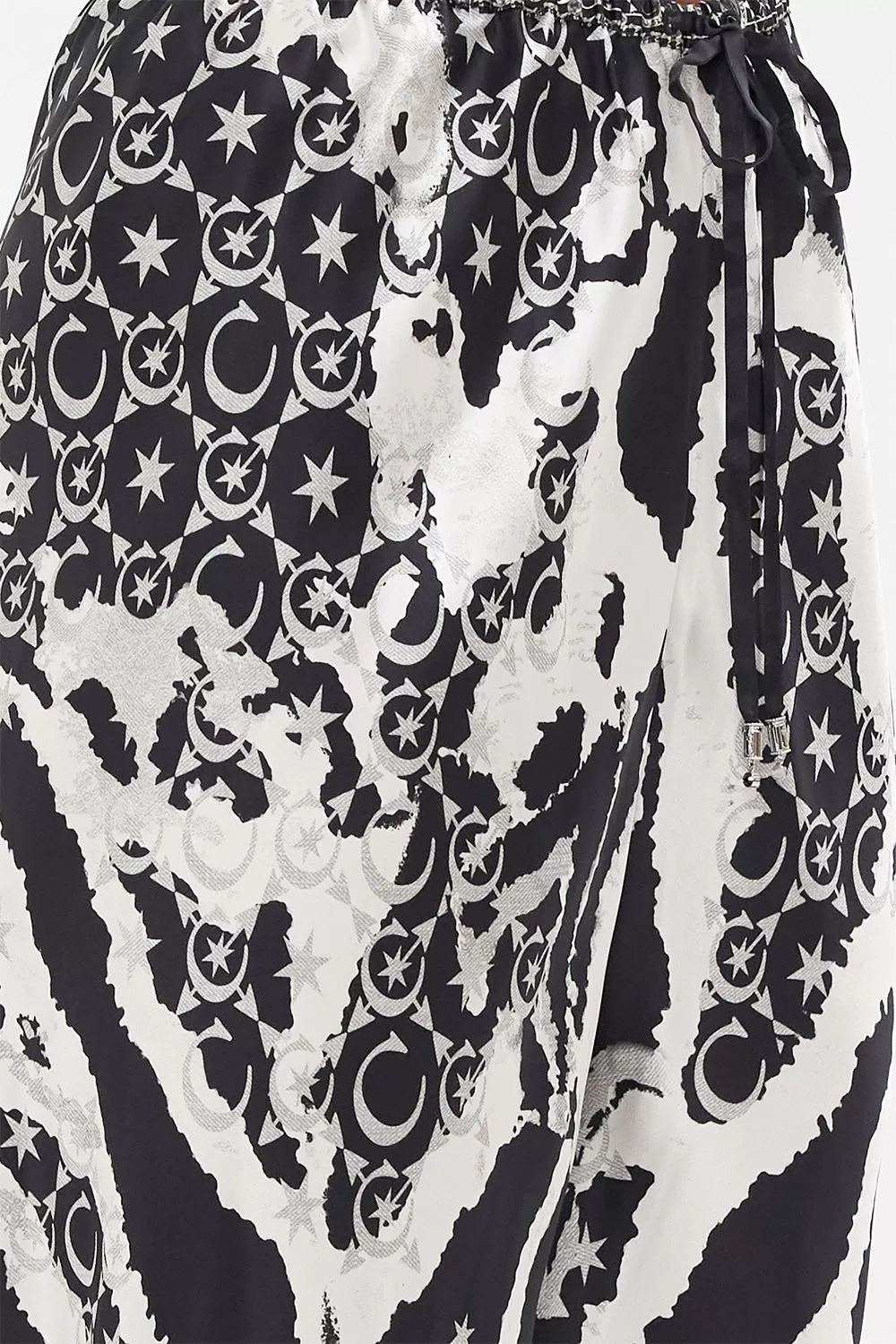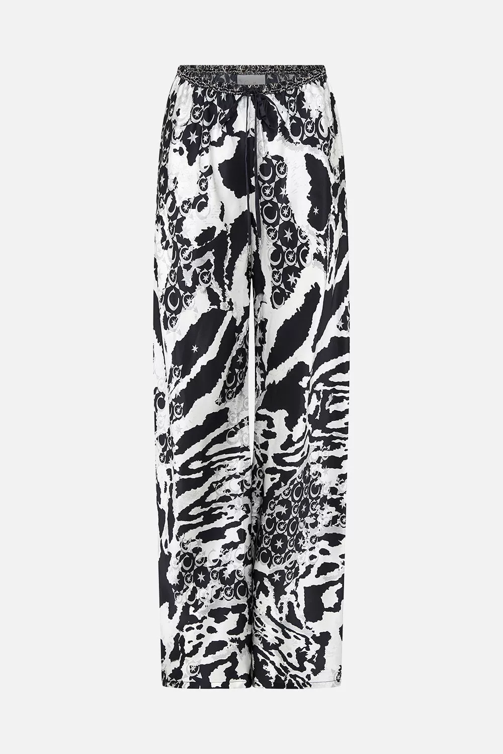 The Feline Fantasy Bias Cut Drawstring Pant encompasses the sultry mood of the sleek and seductive feline shadows embracing contrast patterns and making their monogrammed marks. Crafted from signature CAMILLA silk, these luxury palazzo pants feature an elasticated high-rise cut to elongate the leg, tassel hardware and a relaxed silhouette that falls into a flared wide leg. Lovingly handcrafted and designed in Australia, explore more from The Moral Of The Story: Act II collection.