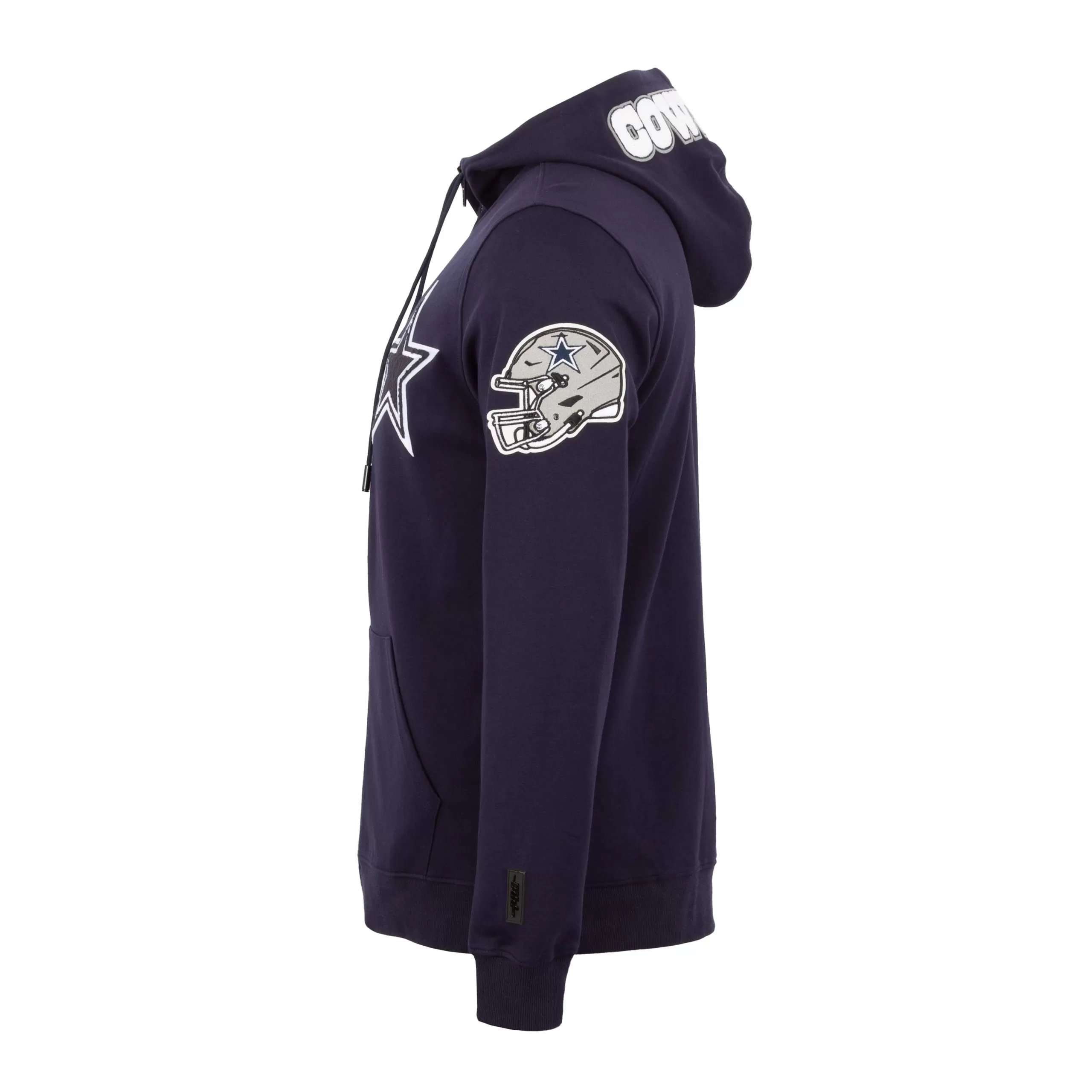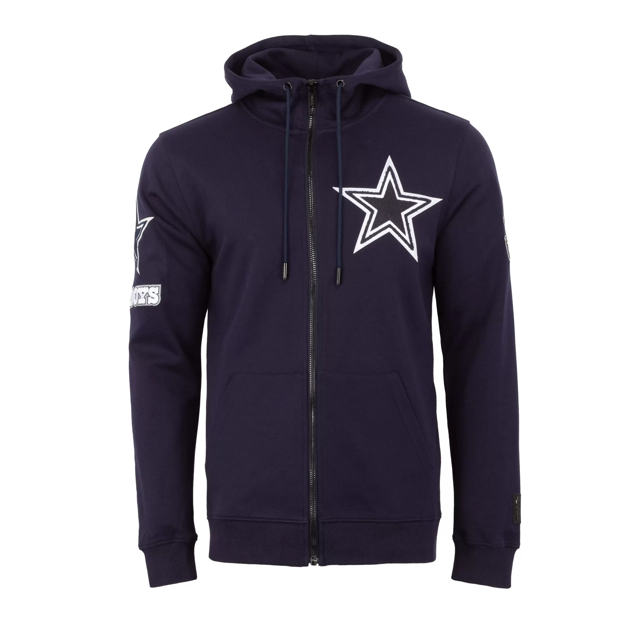 Keep your game day look on point with this Dallas Cowboys Classic FZ hoodie by Pro Standard. This stylish, comfortable cotton double-knit hoodie features base twill 3D satin stitch embroidery and chenille team logo patches. The double-knit cotton provides just the right amount of warmth, while the full zip design allows you to adjust the temperature to your liking. The versatile piece can be layered or worn as outerwear.