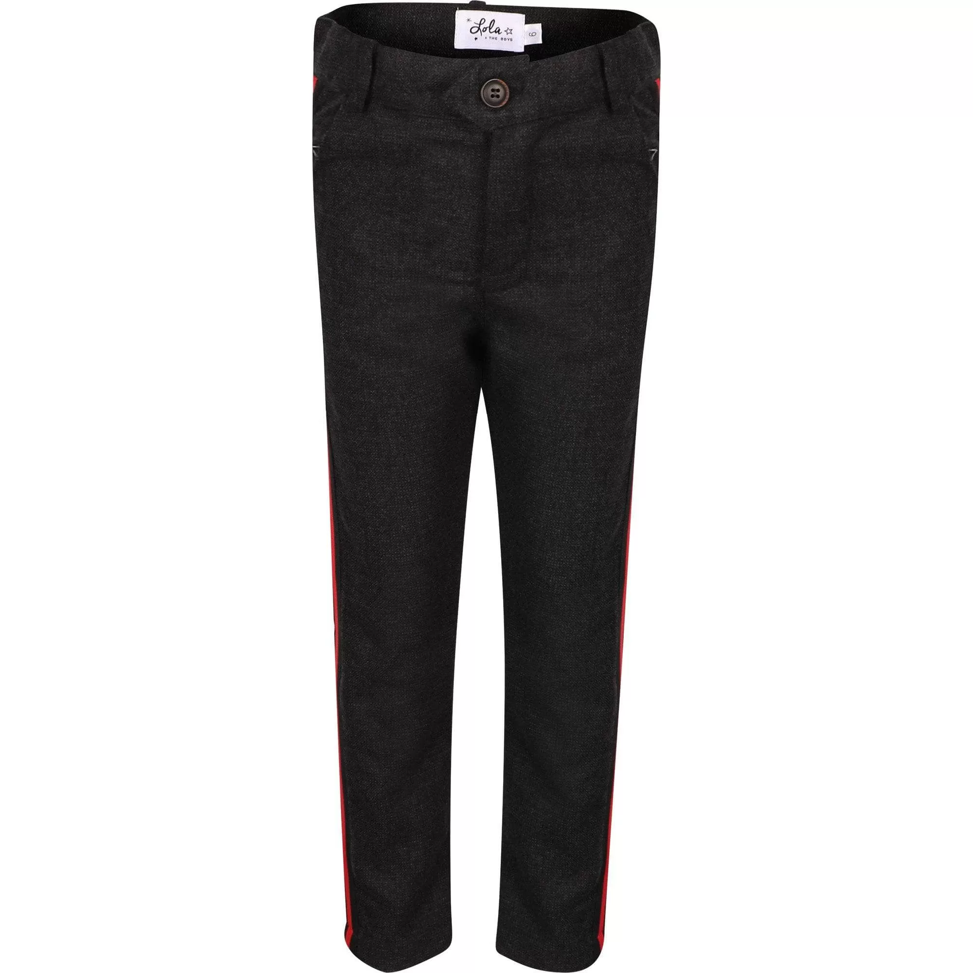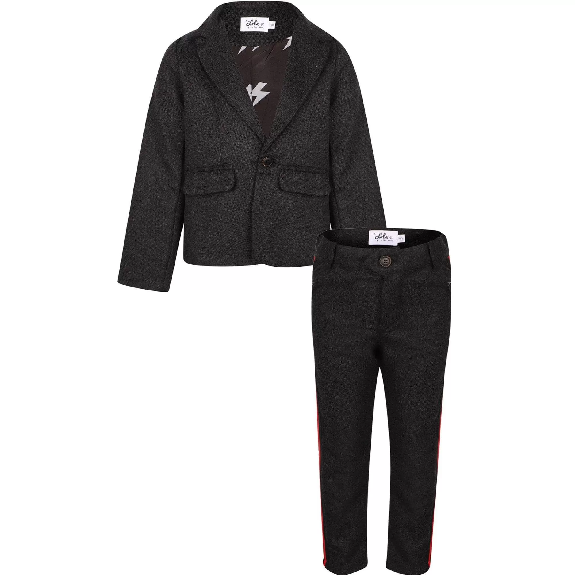 - This suit has a red stripe on the pantsÂ
