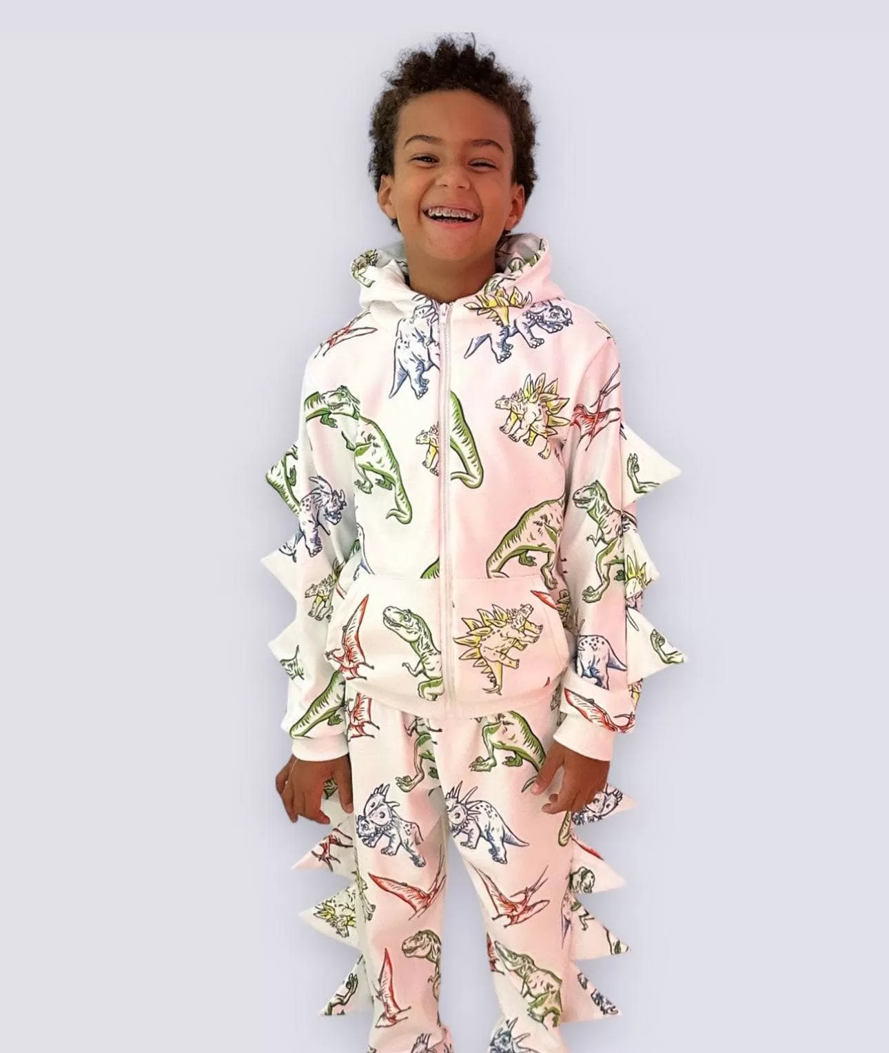 - White matching set with dinos all over