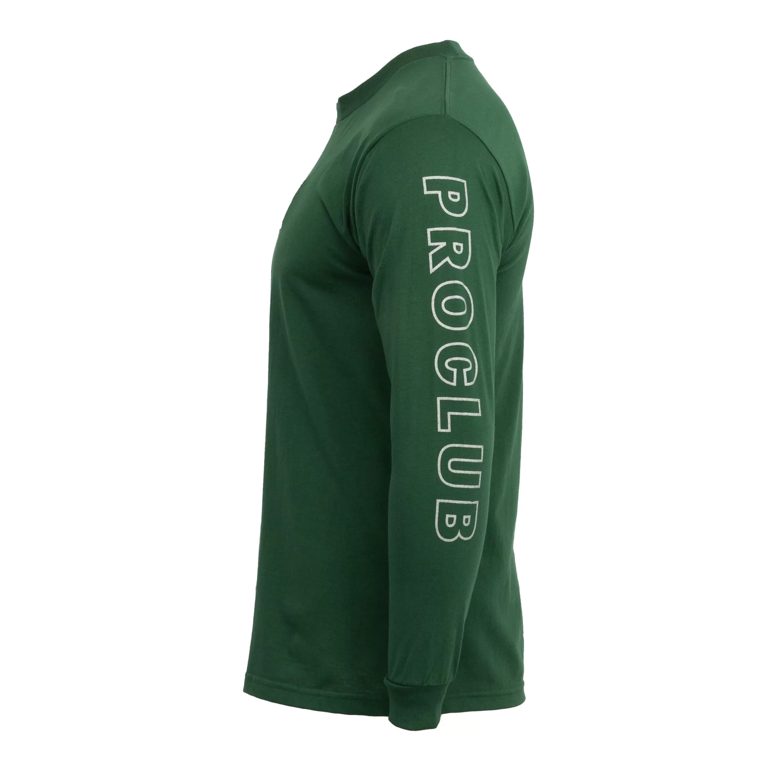 A clean logo on the chest with the comfort you know and love from Pro Club. This Pro Club long-sleeve t-shirt features an embroidered Pro Club logo on the chest with an oversized outline printed logo down the left sleeve. Built like your favorite short-sleeved Pro Club tee, this Pro Club logo t-shirt is perfect for your everyday looks.