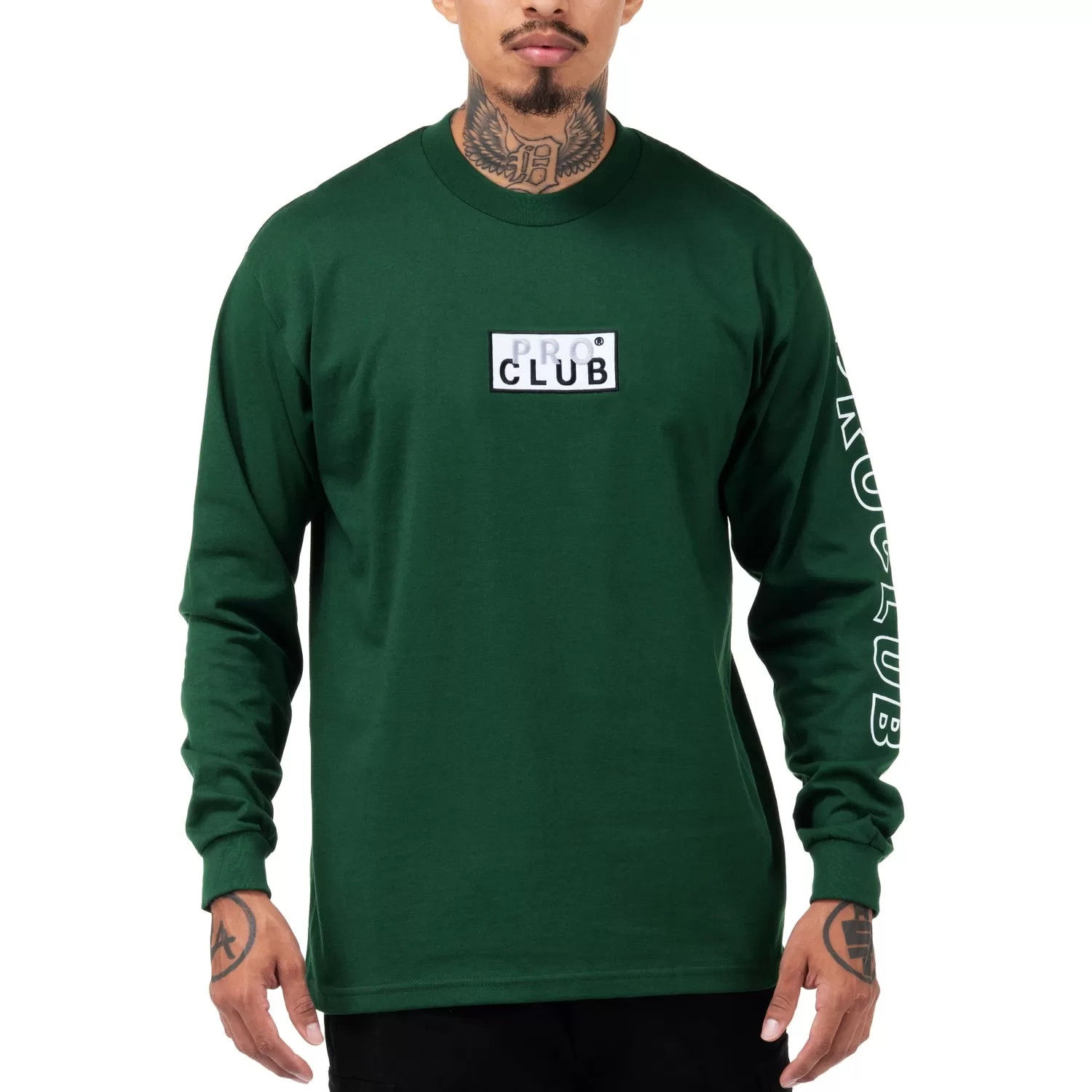 PRO CLUB EMBROIDERED BOX LOGO LONG SLEEVE T-SHIRT