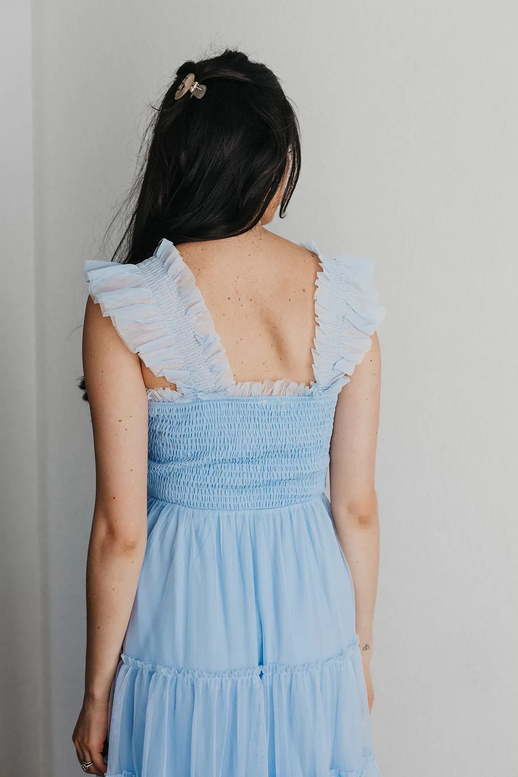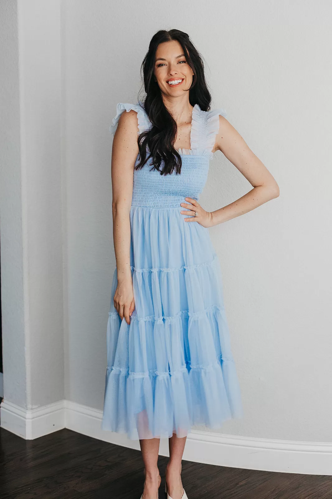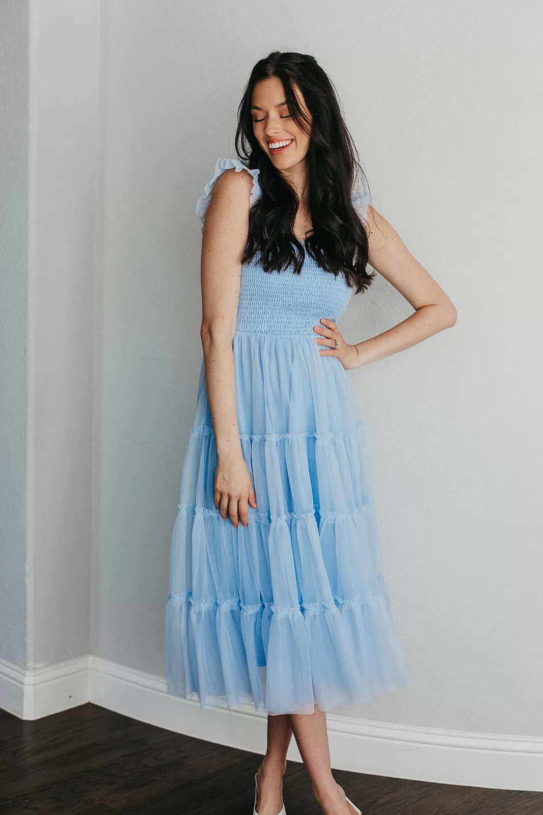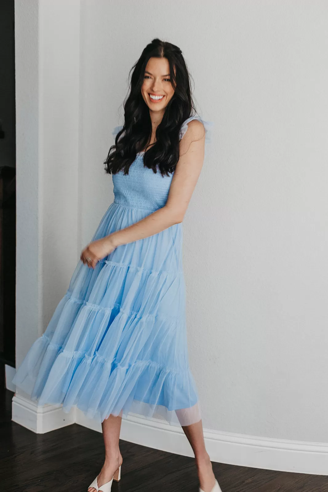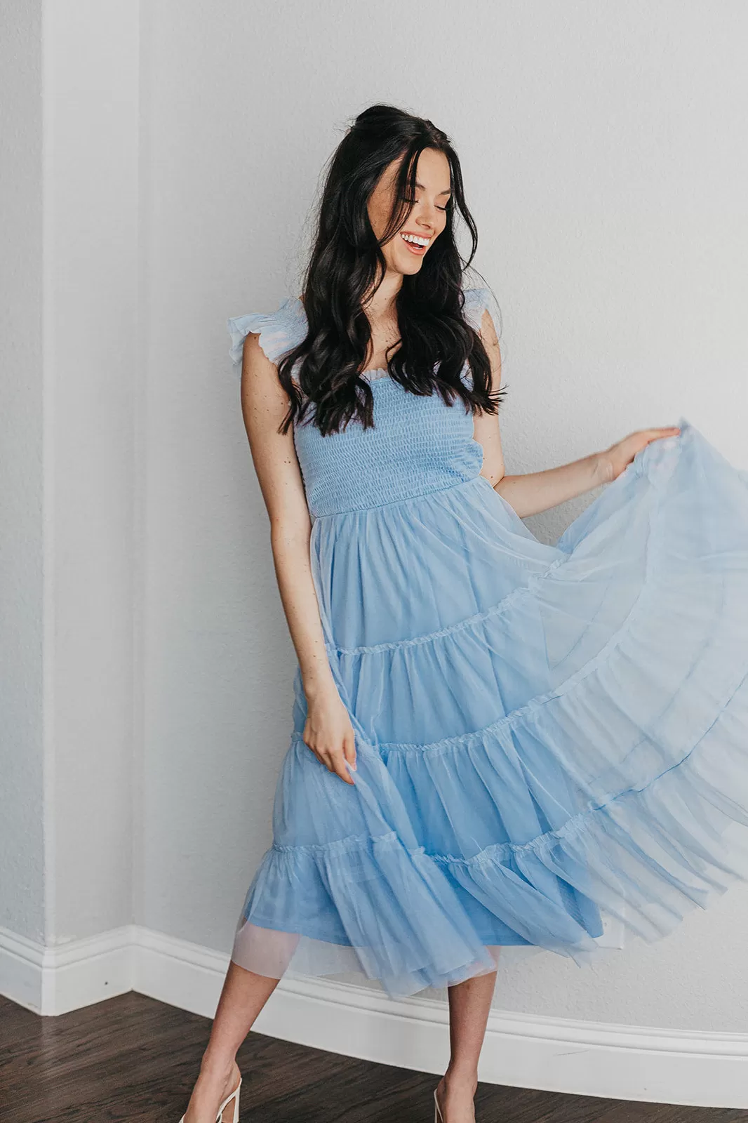 Fairytale Love Tulle Smocked Midi Dress- Blue