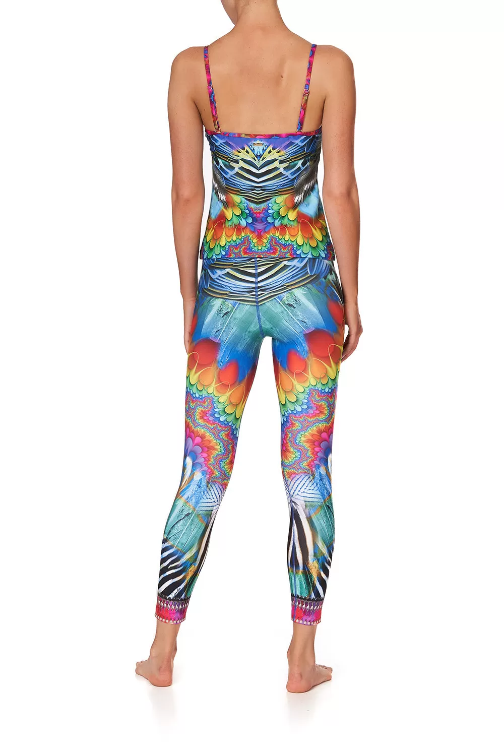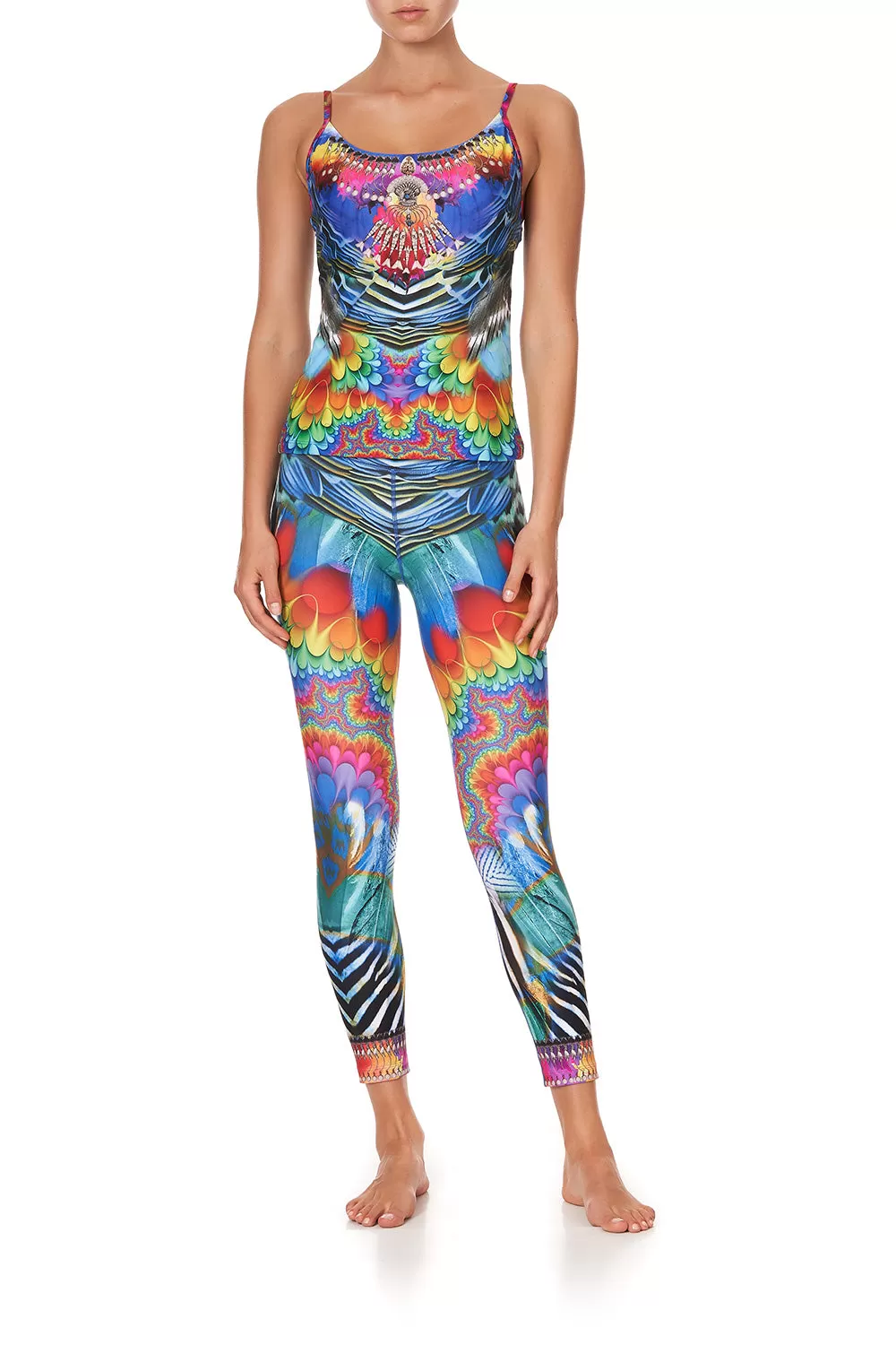 Fall in love with the colourful magic of the 2012 CAMILLA ‘Gypset’ collection all over again with the Rainbow Gathering Fitted Active Tank. Psychedelic fauna soars through a kaleidoscopic lens across a canvas of soft stretch fabric. Designed with a built-in bra plus adjustable and convertible straps, this animal inspired fitted sports cami also has removable cups. Created for yoga, pilates, running, walking, gymnastics, aerobics, boxing, playing, cartwheels on the beach, hiking through the mountains or sweating it out at a personal training session. Find your own ritual to heal the mind and the body, breath in and breath out. Deepen your practice by pairing with the matching Rainbow Gathering Active Bike Shorts for a balanced new addition to your CAMILLA collection.