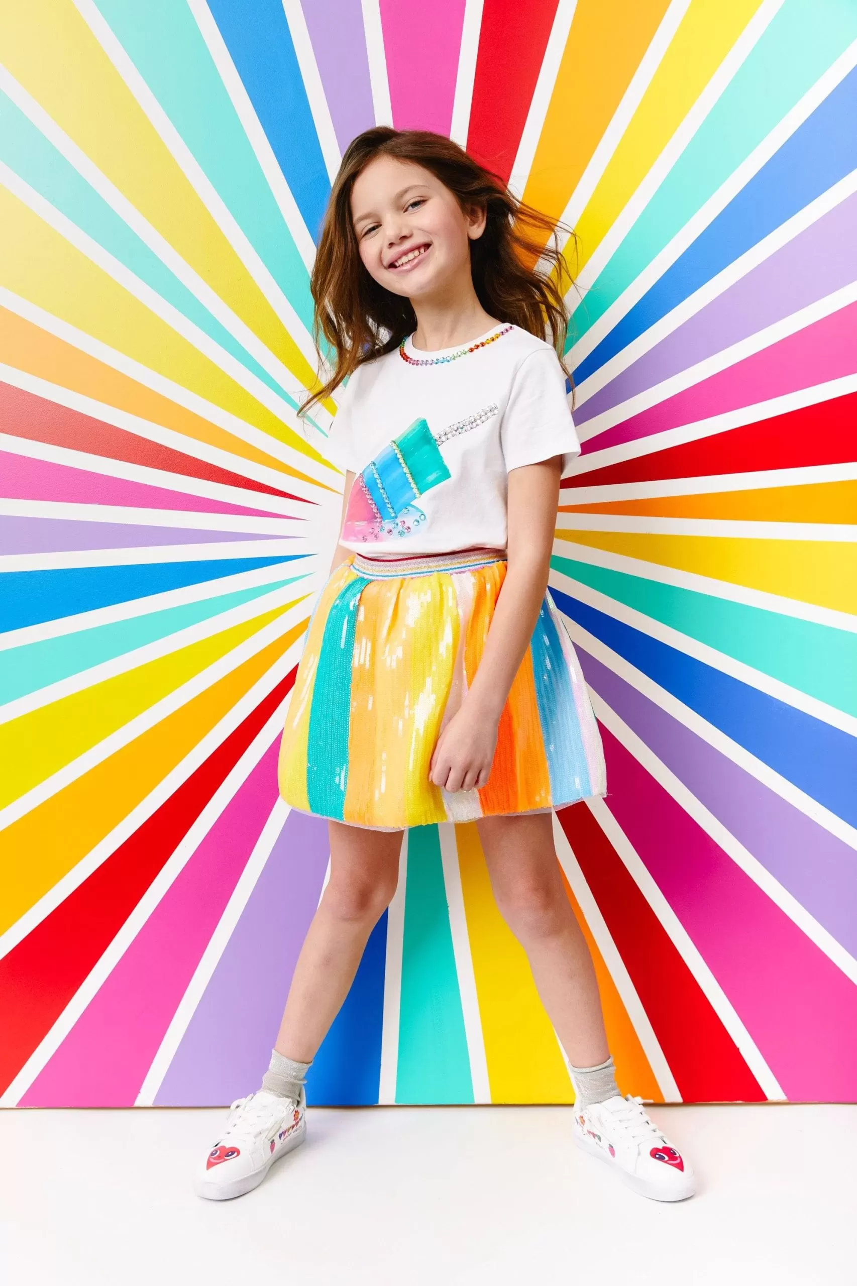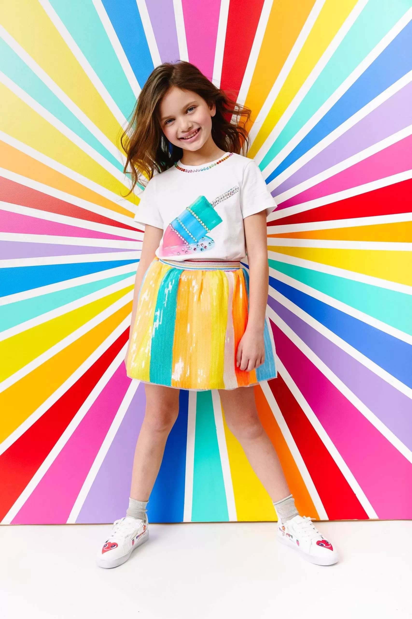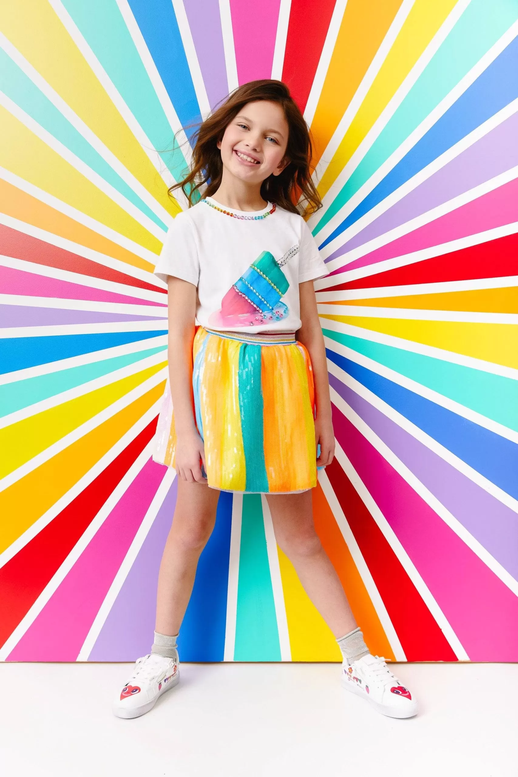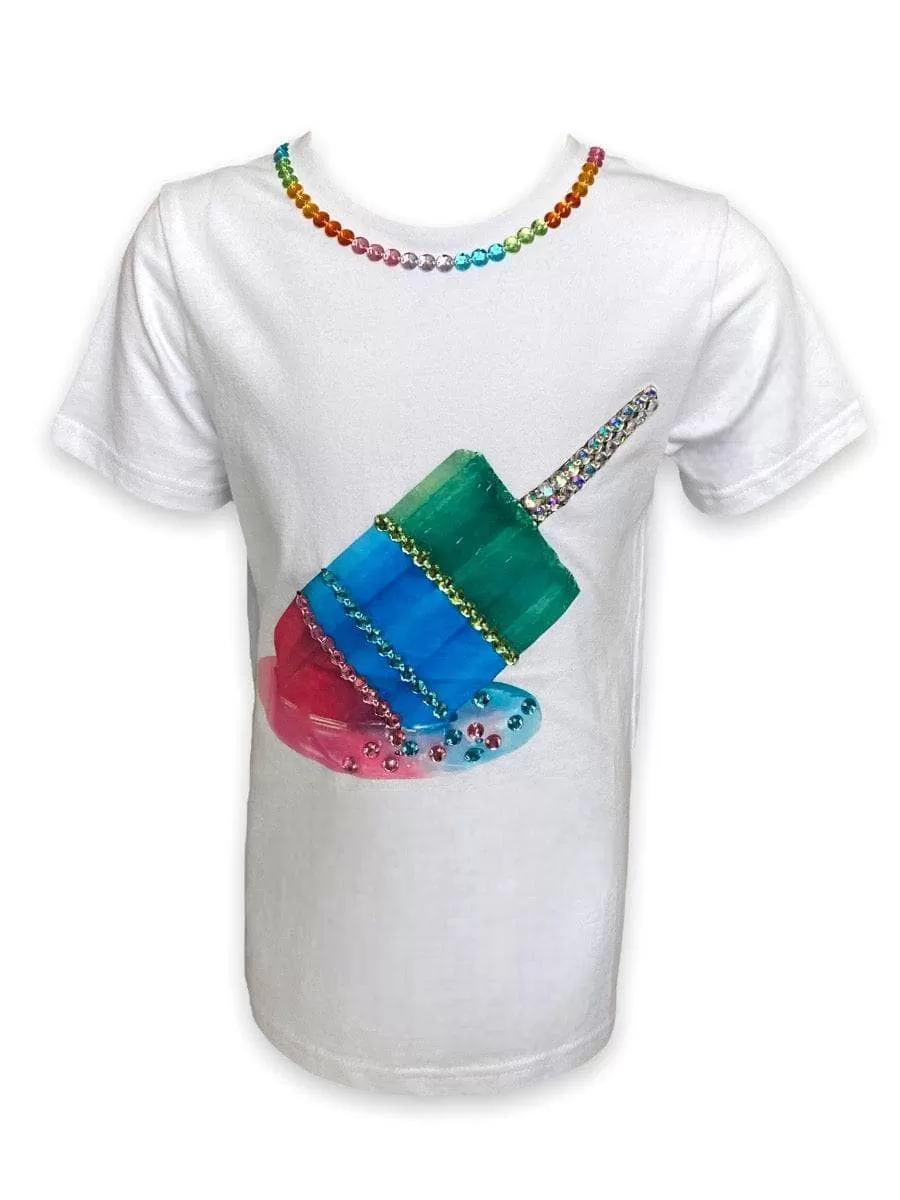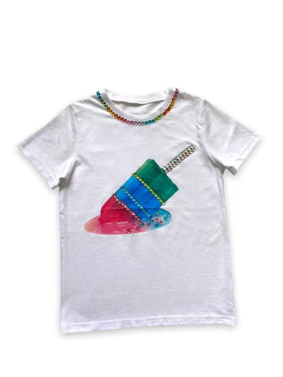 This cool t-shirt features a bright and colorful popsicle design that’s perfect for any summer day.