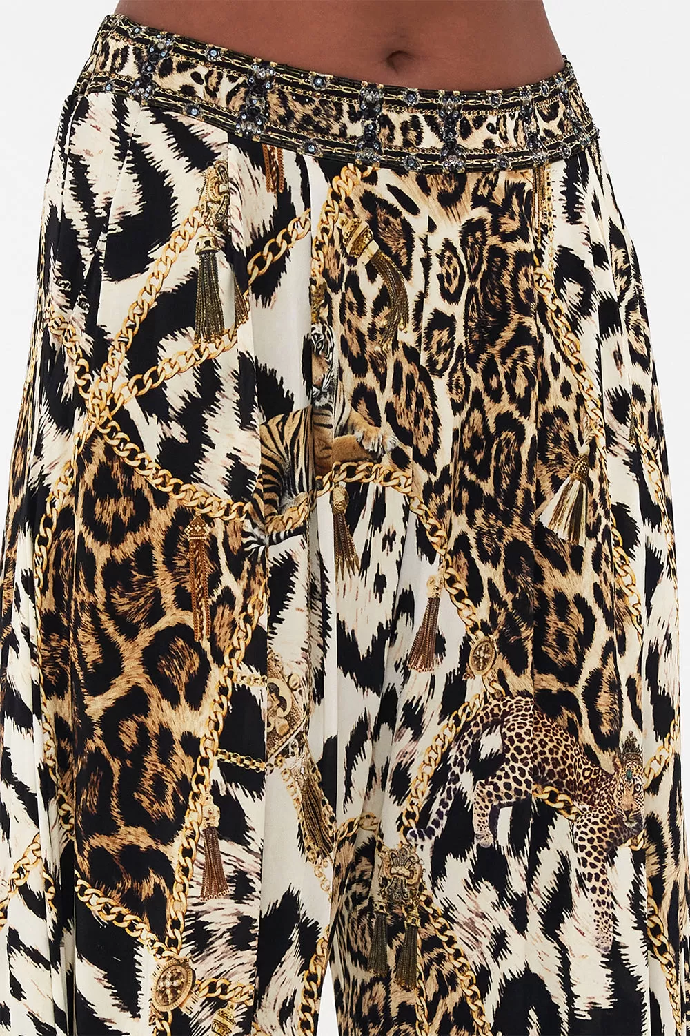 The Role Call Jersey Drape Pant With Pocket revives nostalgic animal odes with an intricate mosaic of leopard print, golden chain cascades and the powerful pounce of the big cat. Crafted for the extravagant at heart, these luxury knit pants feature dramatic drape on either leg, hand-embellished crystals, a contrasting waistband that features back elastication and a relaxed silhouette that meets a tapered hem.