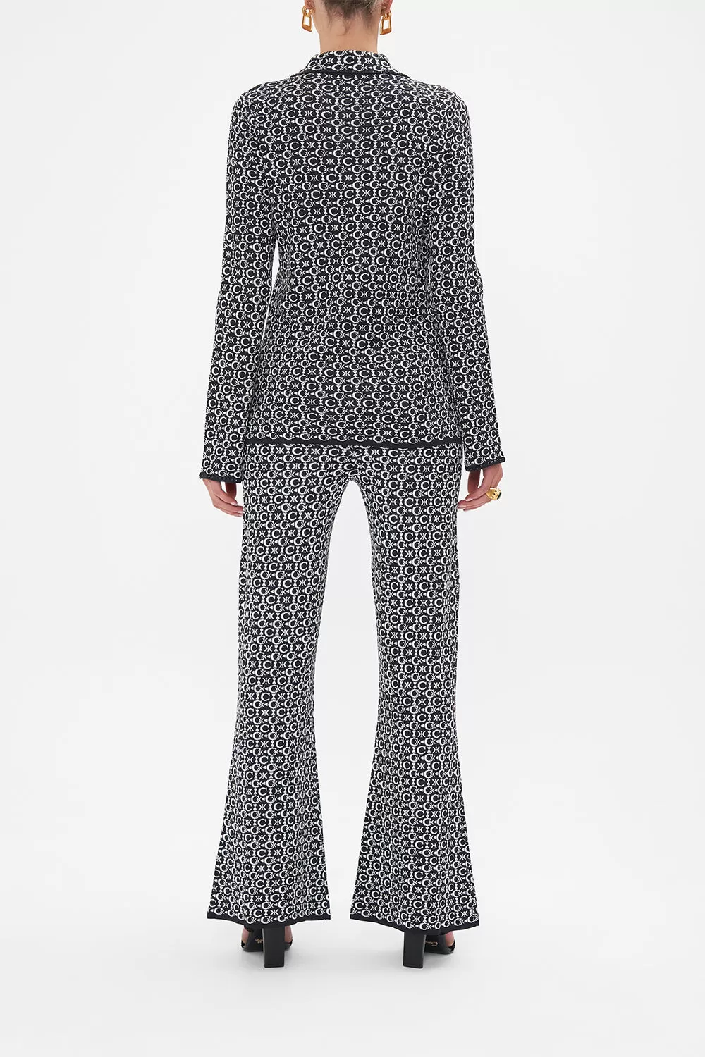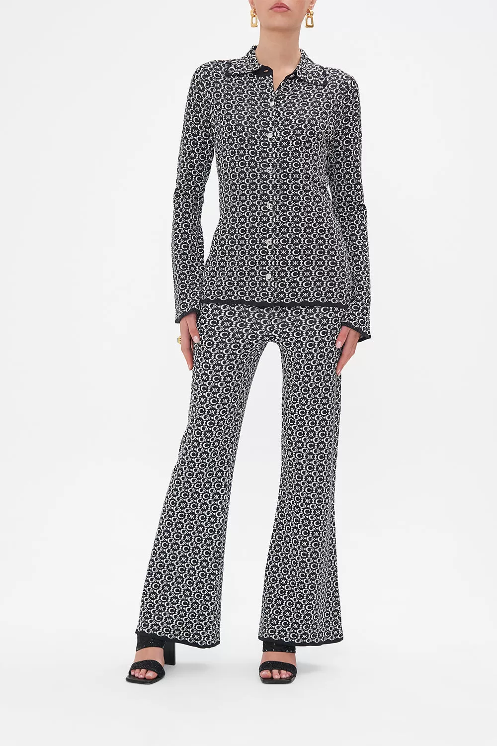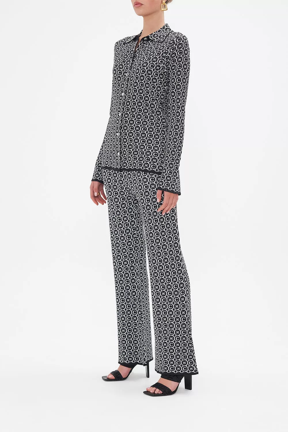 The Feline Fantasy Knit Shirt encompasses the sultry mood of the sleek and seductive feline shadows wildly embracing their contrast patterns and making their monogrammed marks. Crafted from fully fashioned soft rayon blend, this luxury knit shirt offers odes to soft tailoring at the collar, a sensational flared sleeve that dances at the wrist and a relaxed slimline silhouette that skims the curves, finished with a decadent button enclosure. Lovingly handcrafted and designed in Australia, explore more from The Moral Of The Story: Act II collection.
