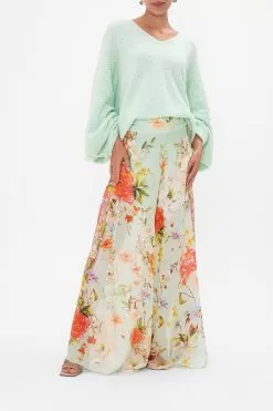 The Talk The Walk Knit V Neck Jumper With Dolman Sleeves embodies fresh fragrant blooms dancing amongst a soft mint ambiance. Adorning hand-embellished crystals and an elegant v neckline, this luxury knit jumper features a soft statement dolman shaped long sleeve that taper to a classic hip length hemline. Lovingly handcrafted and designed in Australia, explore more from The Moral Of The Story: Act II collection.