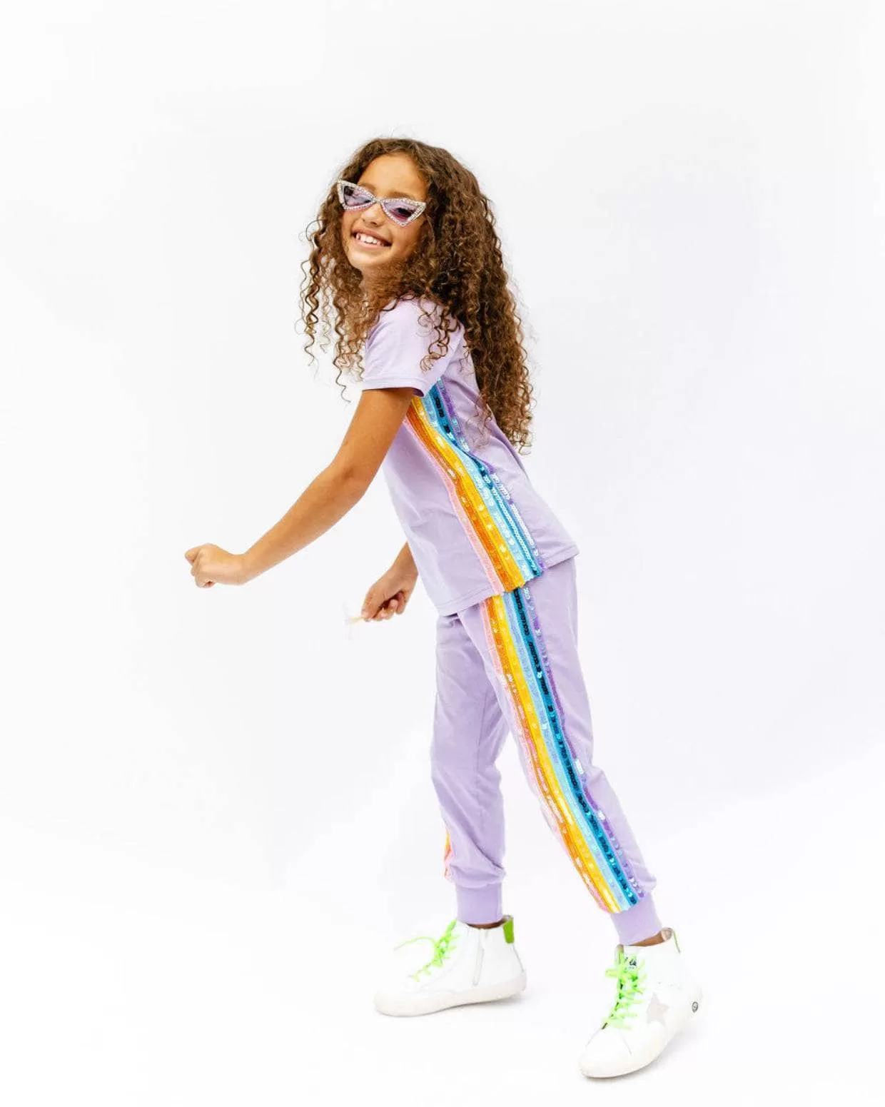 - This comfy lavender sequin jogger set