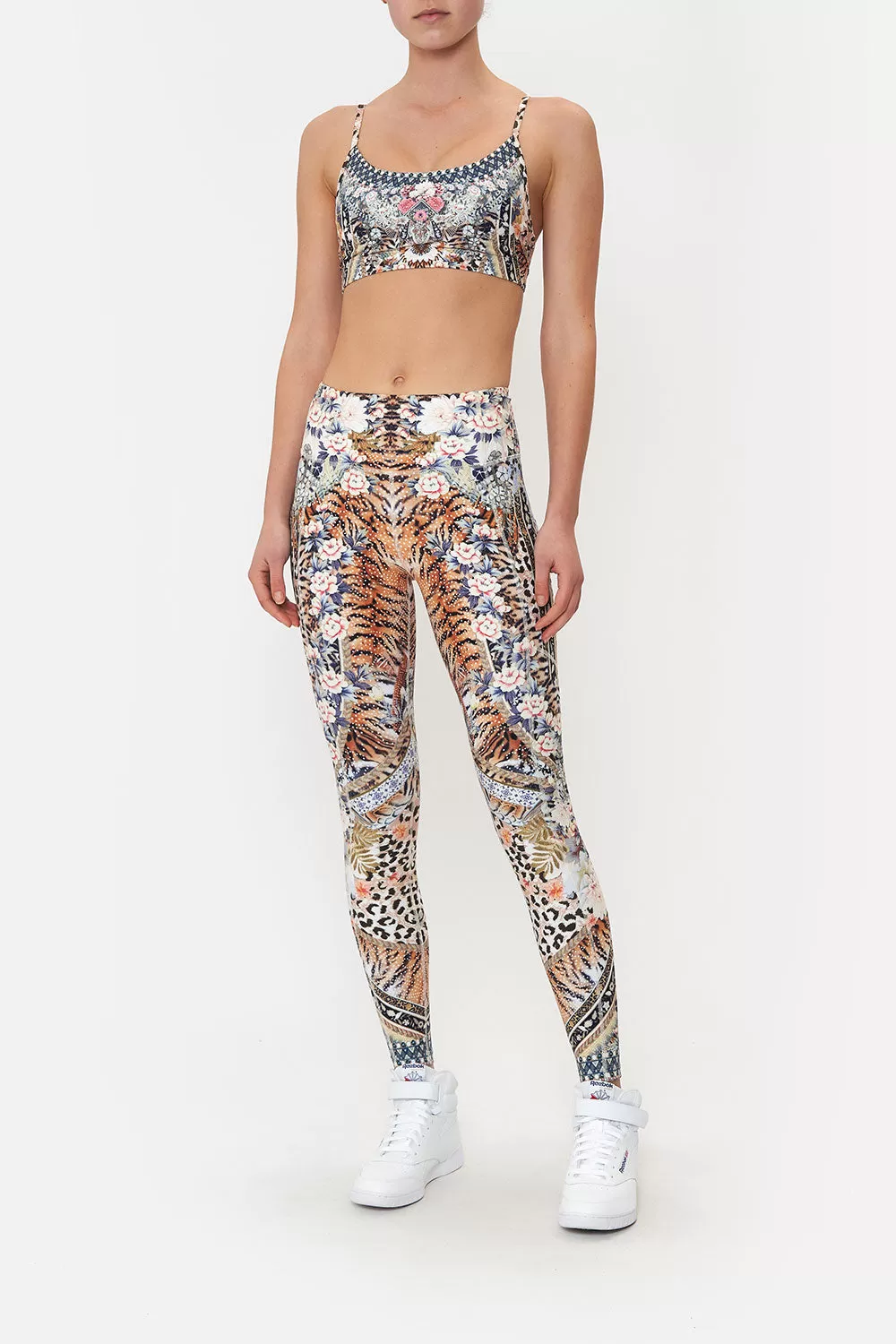A mosaic of bouquets meeting wild majesty, the Moto Maiko Legging With Pocket is enwrapped in blush botanicals, animal print dipped in soft cocoa and ferns of olive hues. Crafted with anti-pilling technology, these luxury floral leggings feature pocket functionality, a high-rise cut to cinch the waist, a fitted silhouette, four-way stretch technology and are crease resistant.