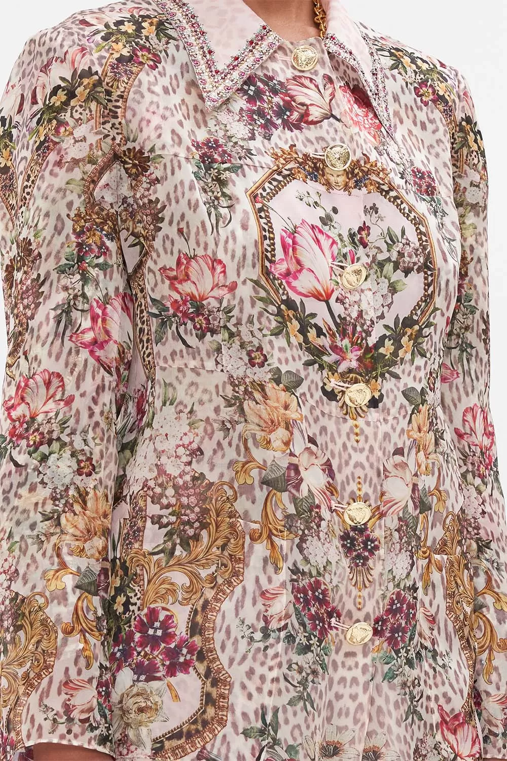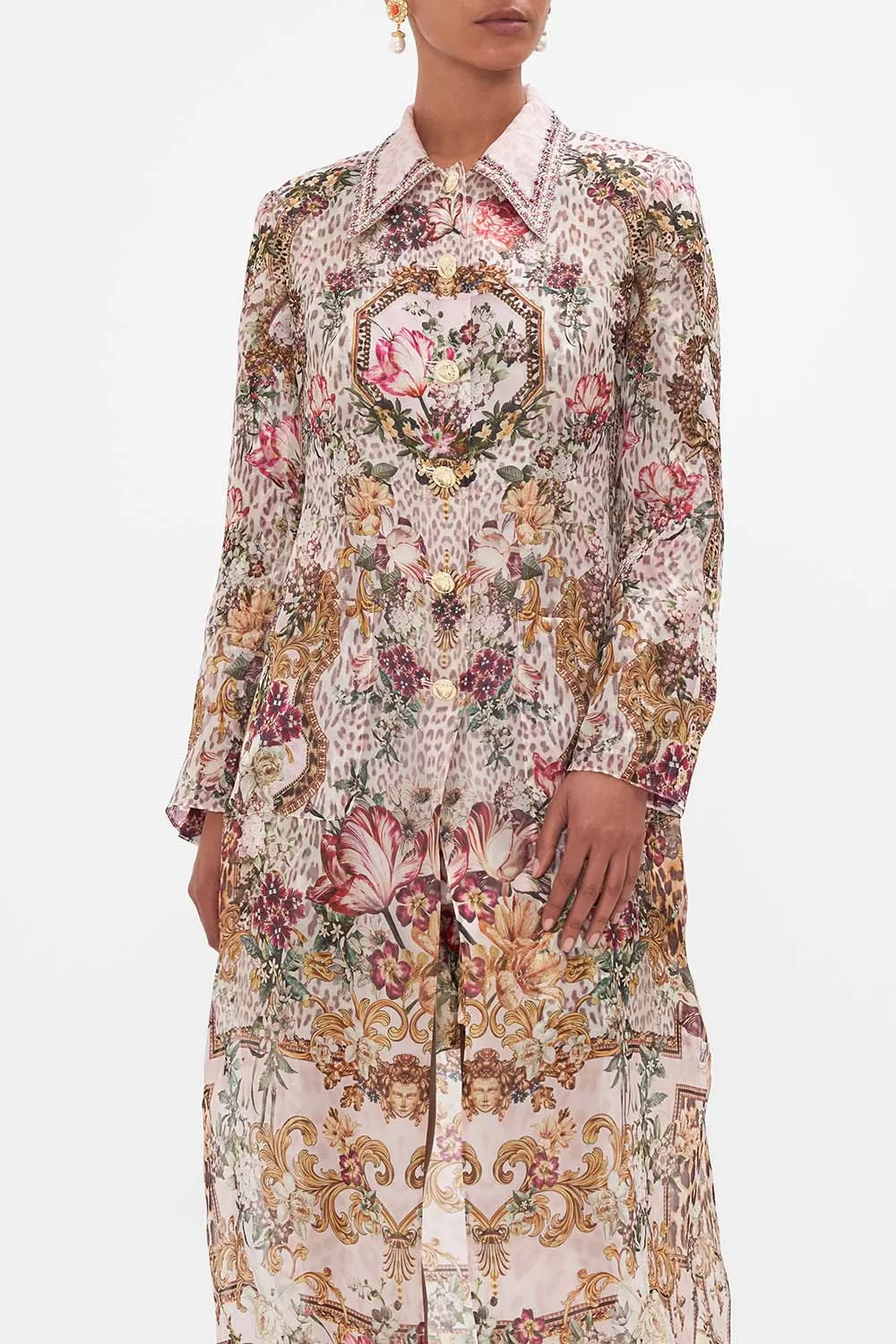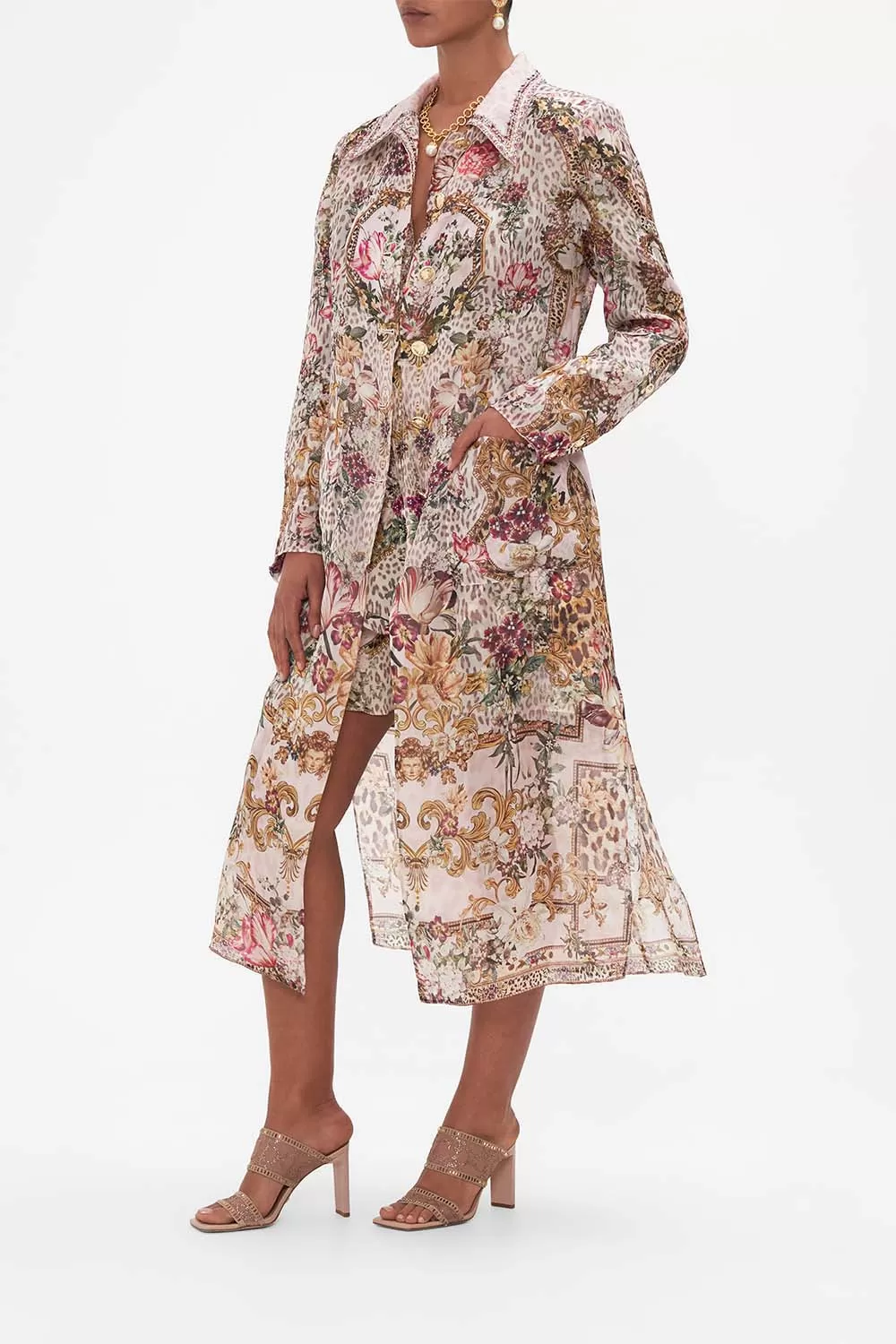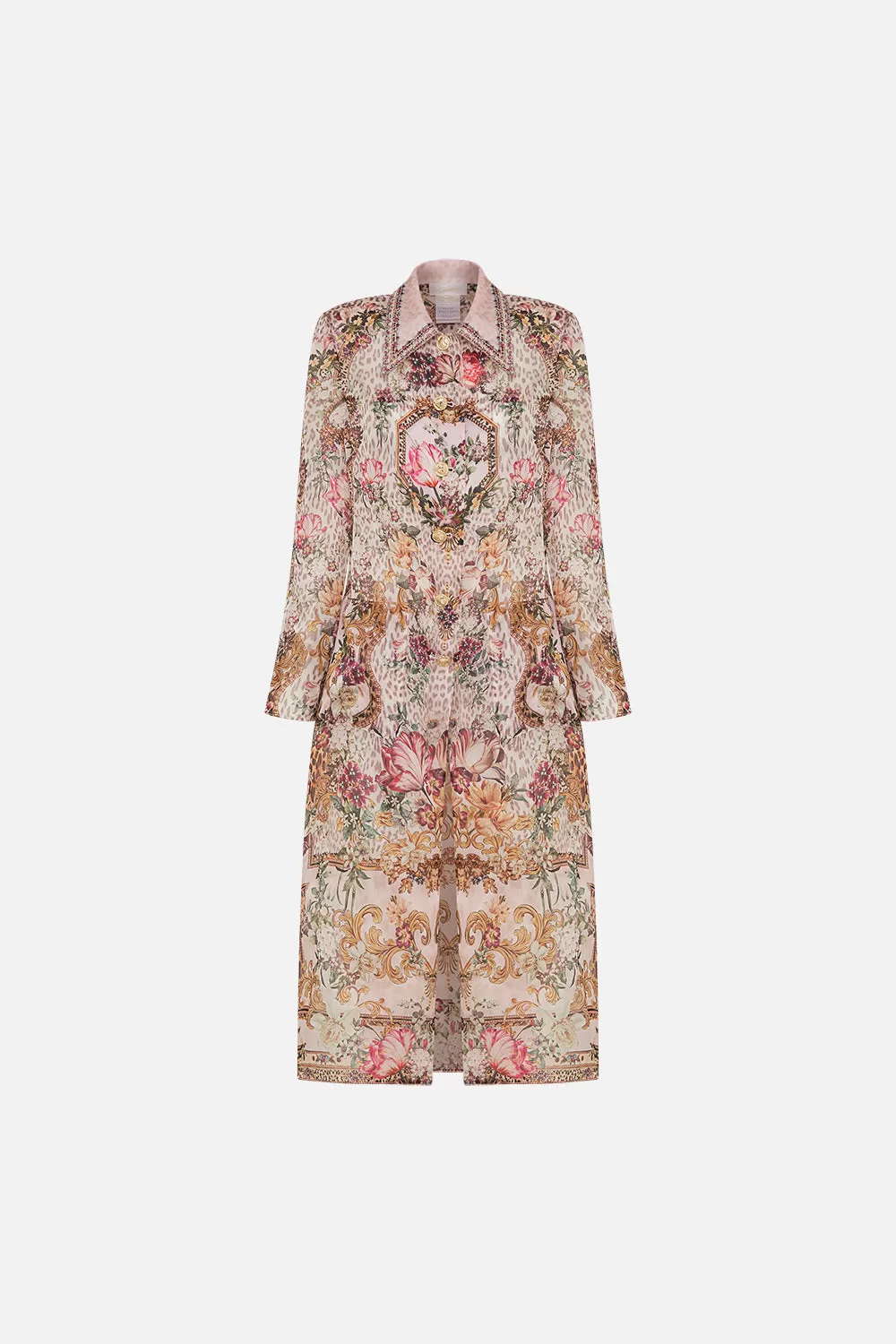 The Bambino Bliss Long Button Front Coat echoes the sweet symphony pastel pinks awashed in opulent florals and leopard print dancing beneath gilded archways. Make a bold statement with this luscious longline printed coat featuring a single breasted button enclosure, fully lined with contrasting front patch pockets and sculpted lapels to elevate and accentuate the structured silhouette. The ultimate in luxe layering, an opulent outerwear piece worn over dresses or with the Bambino Bliss Straight Leg Pant. Lovingly handcrafted, designed in Australia. Explore more from the Amore Mio collection.