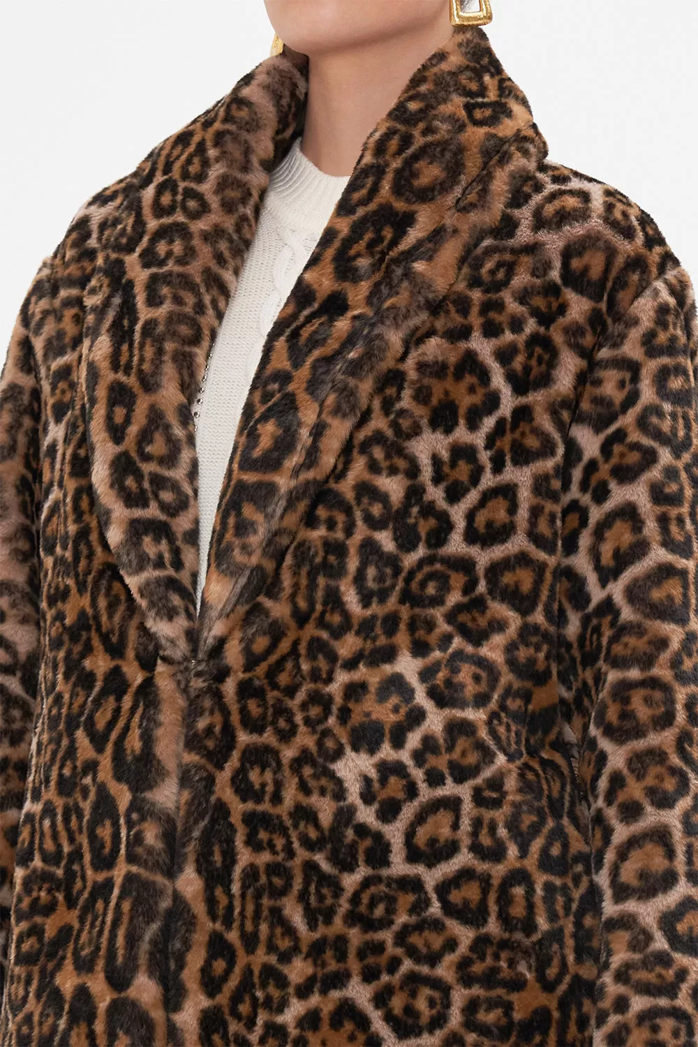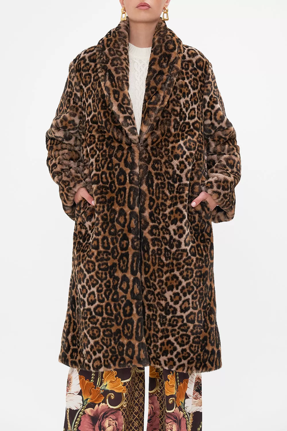 The Wave Your Wand Long Teddy Coat wanders through a flurry of wild leopard print of warm gold tones that glimmer against a decadently rich deep chocolate background. A luxurious longline layering piece, this winter coat plays host to wrap front enclosure with a printed waist-tie that cinches and shapes, a relaxed fit silhouette is fully lined with a soft shawl collar that gently caresses the neckline. Lovingly handcrafted and designed in Australia, explore more from The Moral Of The Story: Act II collection.