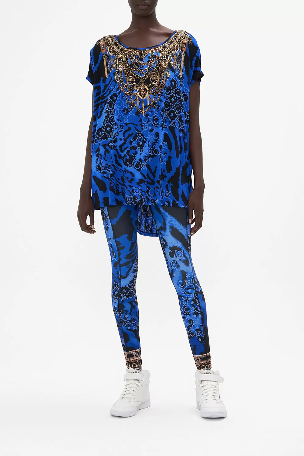 The Cat Got Your Tongue Loose Fit Tee is encased by a symphony of animal print wrapped in the deepest of periwinkle blues, our namesake CAMILLA initalling and star-dipped details. Adorning hand-embellished CAMILLA crystals, this luxury tee plays host to cropped soft sleeves, a relaxed silhouette, a shaped high-low hemline and a rounded neckline.