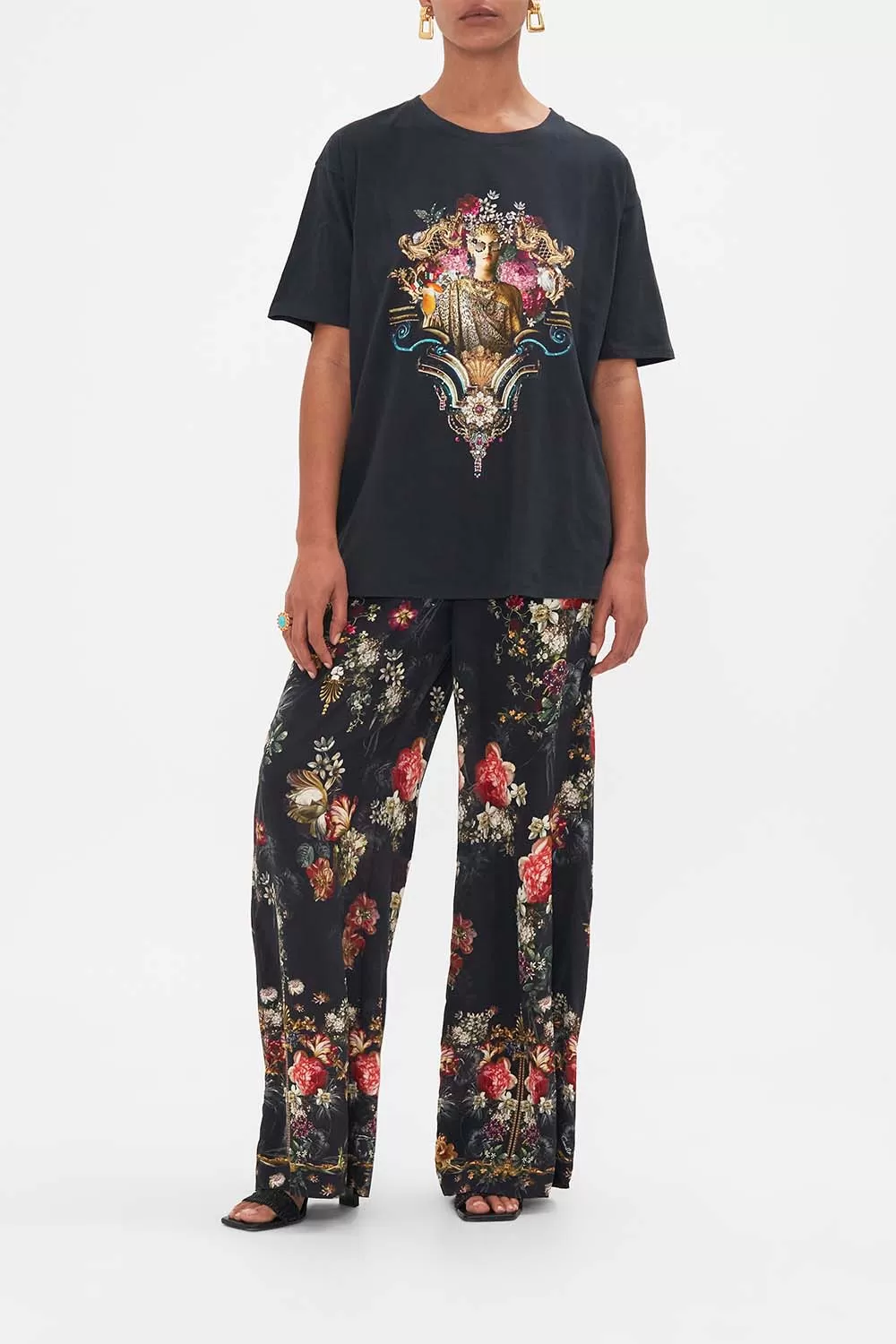 The A Night At The Opera Organic Cotton Oversized Band Tee echoes the sweet symphony of frescoes adorning opulent florals, ethereal cherubs and grand gilded archways. Crafted from breathable cotton, this luxe trans-seasonal tee is finished with CAMILLA crystals, wide statement sleeves, a crew neckline that falls into a relaxed oversized design and a longline silhouette. For chic casual styling pair with the A Night At The Opera Straight Leg Relaxed Pant. Lovingly handcrafted, designed in Australia. Explore more from the Amore Mio collection.
