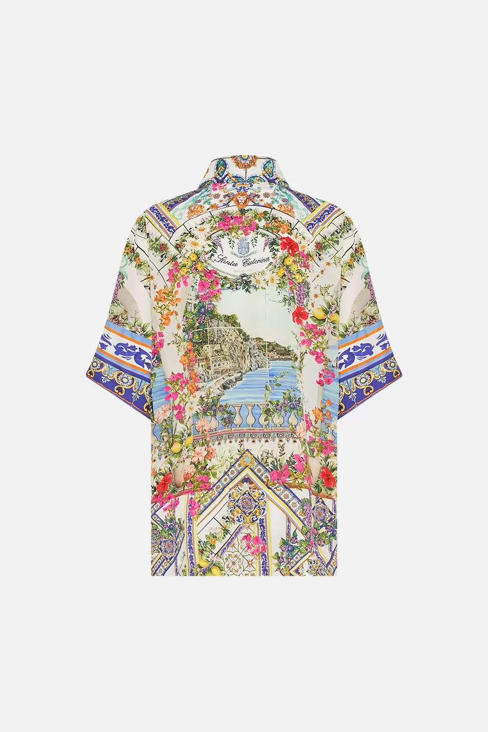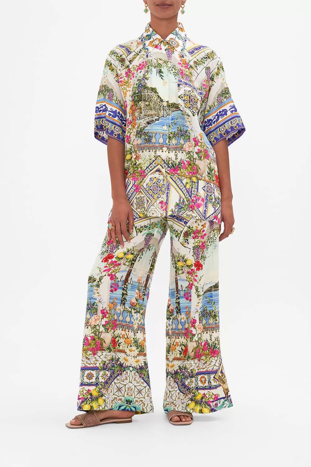 The Amalfi Amore Oversized Shirt With Pocket celebrates the vista views through iconic archways lined with fragrant florals at the Hotel Santa Caterina. Crafted from the softness of silk, this luxury womens shirt is home to an oversized silhouette that adorns shimmering crystals, button front detailing for effortless enclosure and a wide statement sleeve that dances at the elbow. An exquisite co-ord outfit styled back with the Amalfi Amore Lounge Pant. Lovingly handcrafted, designed in Australia. Explore more from the Amore Mio collection.