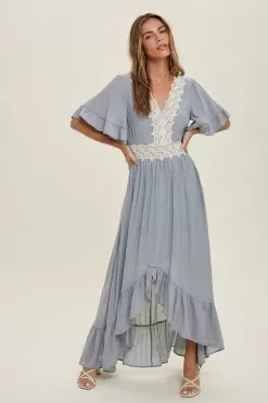 Fontana Lace Trim High-Low Maxi Dress