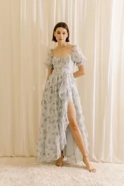 Belinda Floral Slit Ruffle Maxi Dress