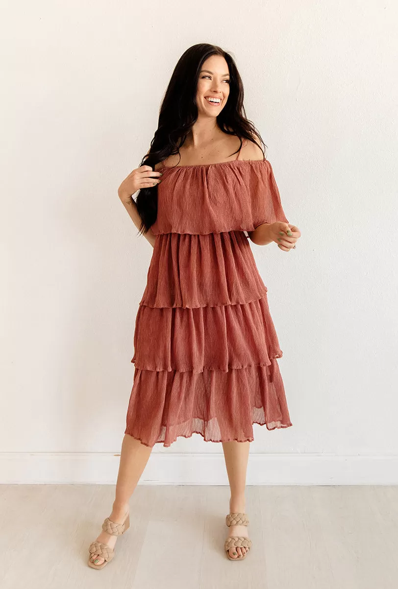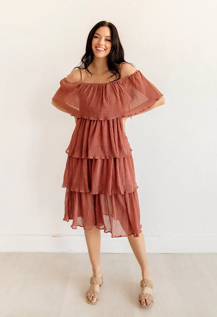 Our Rehearsal Tiered Midi Dress looks fab when worn on or off the shoulder! This mauve tiered midi features a square neckline and adjustable shoulder straps. Cascading tiers make up the body.