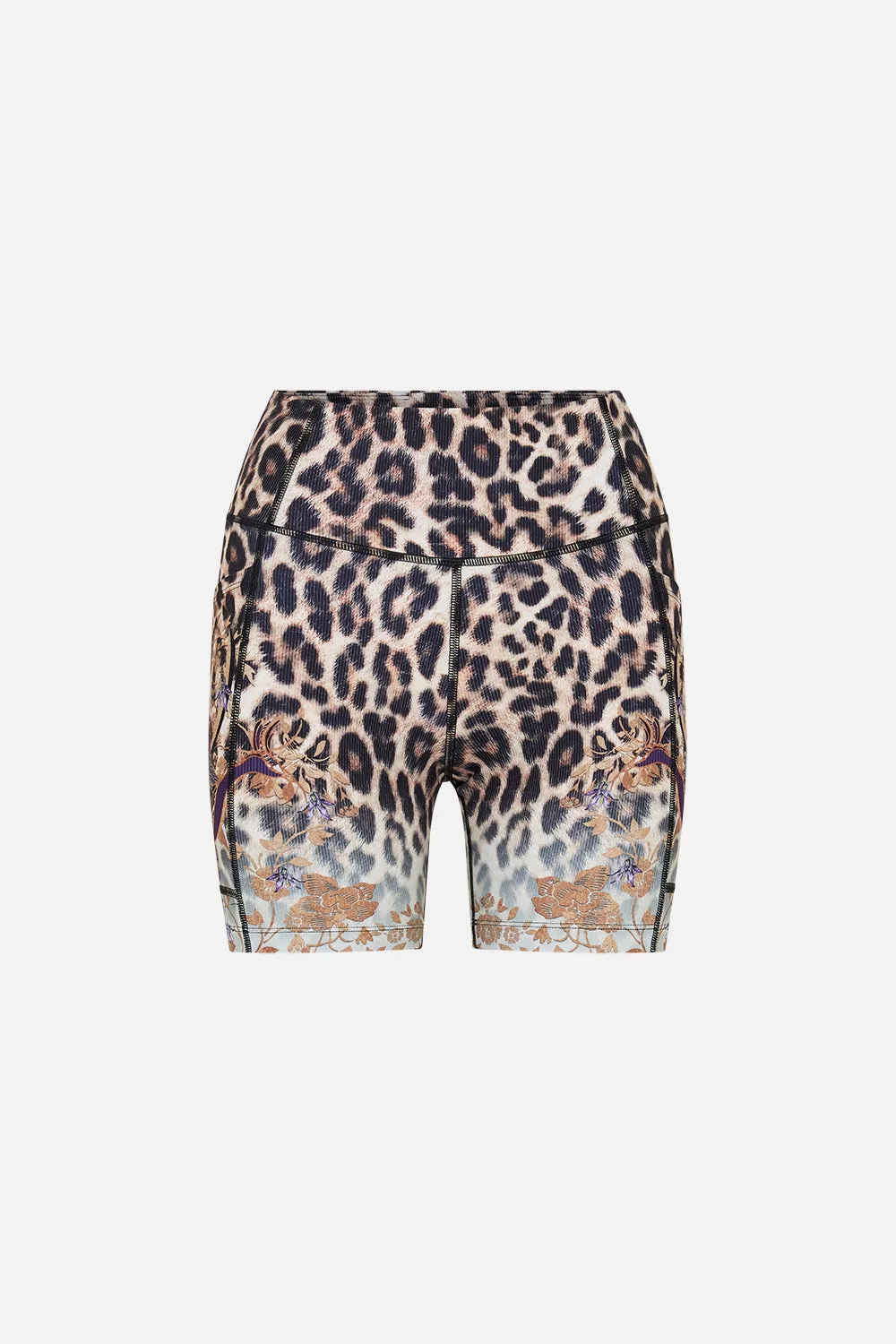 The Nomadic Nymph Running Short With Pocket is effortlessly enwrapped in a sandy leopard print finished with soft blends of icy blues, vines of golden foliage and birds of ethereality dipped in breathtaking burgundy. Adorning contrasting seam detailing, these luxury biker shorts sport an elasticated high waistline, a fitted silhouette equipped with compression support, anti-pilling technology and a cropped cut that dances at the thigh.