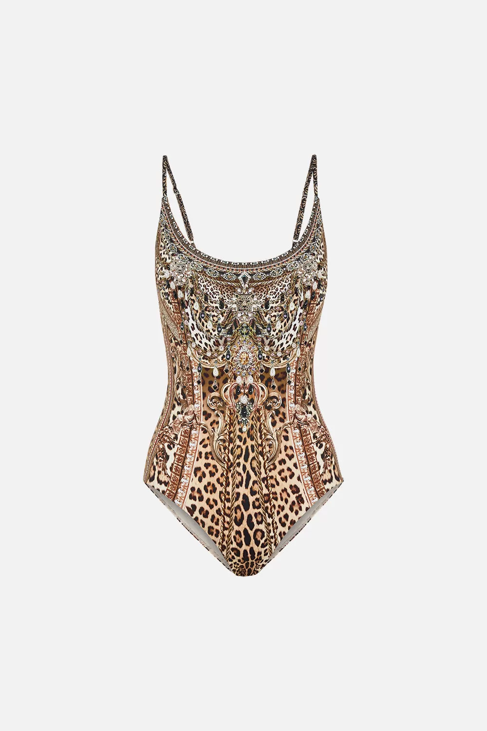 The Standing Ovation Scoop Neck One Piece captures the unbridle inspirational spirit of the infamous Teatro alla Scala through a rhapsody of rich leopard print. Crafted from ECONYL® regenerated nylon, this sustainable swim one-piece features a high-rise silhouette to elongate the leg, a scoop back detail and crystals. A sophisticated printed one piece, designed for chic resort style swimwear. Lovingly crafted, designed in Australia. Explore more from Amore Mio collection.