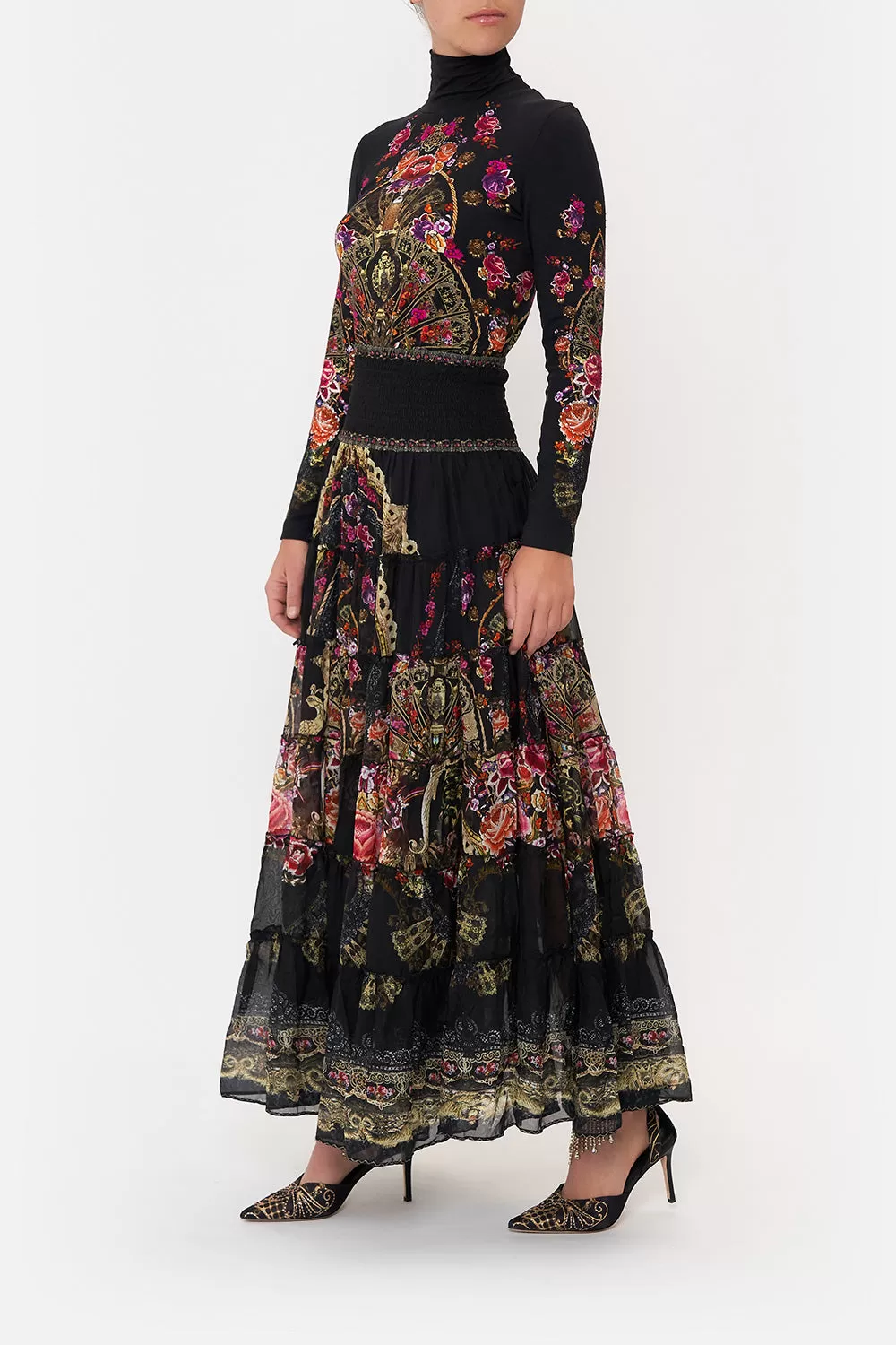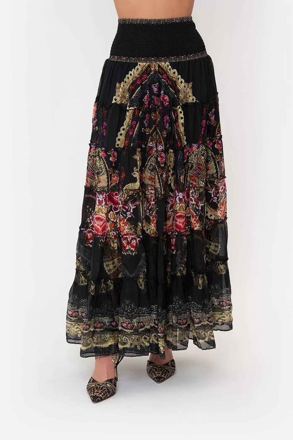 SHIRRED WAIST TIERED CIRCLE SKIRT DANCE WITH DUENDE