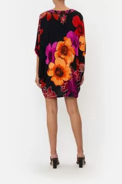 BAT SLEEVE DRESS MIDNIGHT POPPY