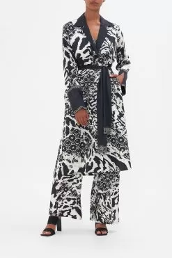 The Feline Fantasy Split Cuff Soft Coat encompasses the sultry mood of the sleek and seductive feline shadows wildly embracing their contrast patterns and making their monogrammed marks. Crafted from the softness of silk, this luxury jacket is home to a statement lapel collar detail, relaxed fit long sleeves that fall into tantalising wide cuffs that dances at the wrist, and a matching waist-tie that cinches the shape. Lovingly handcrafted and designed in Australia, explore more from The Moral Of The Story: Act II collection.