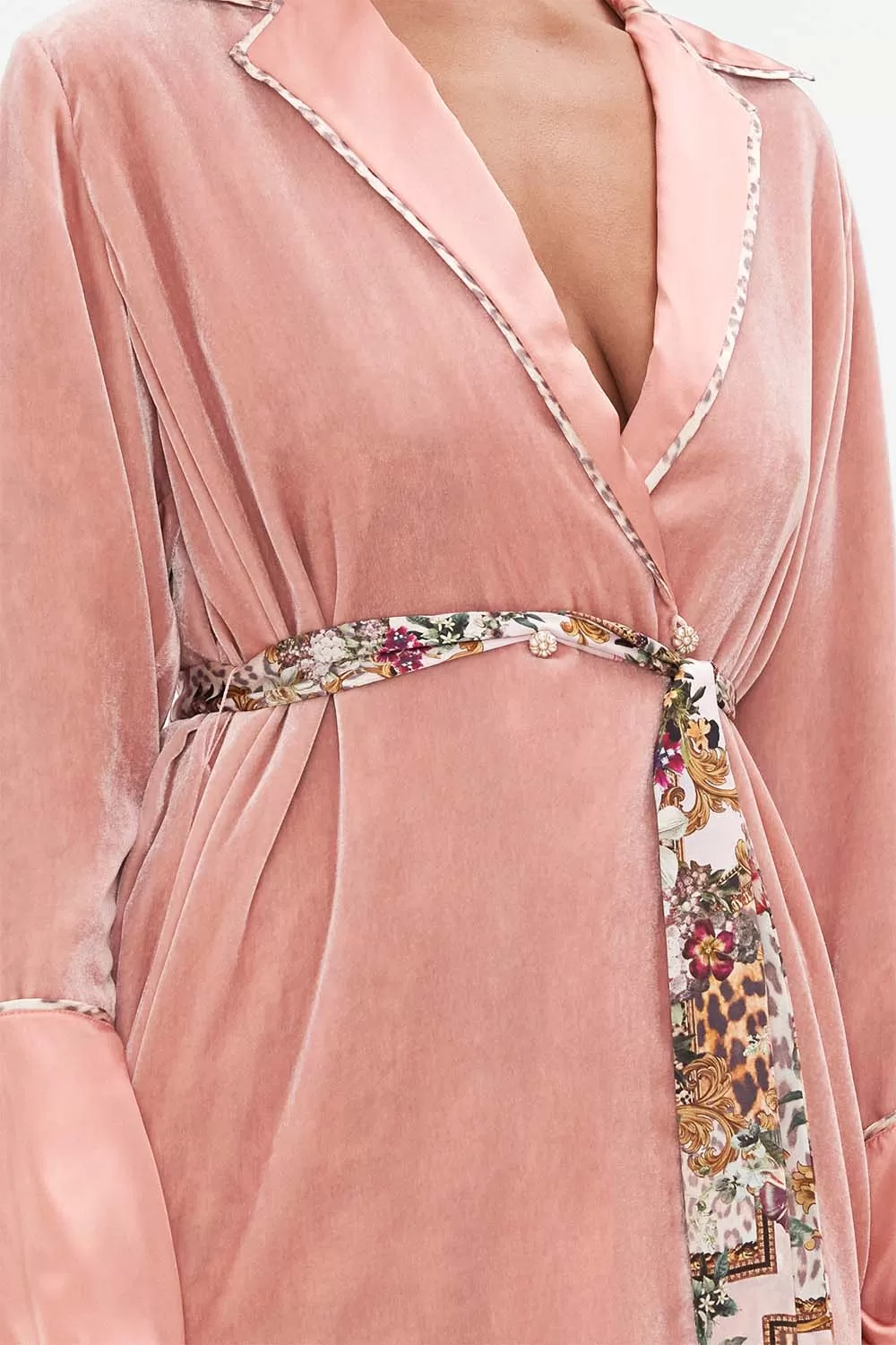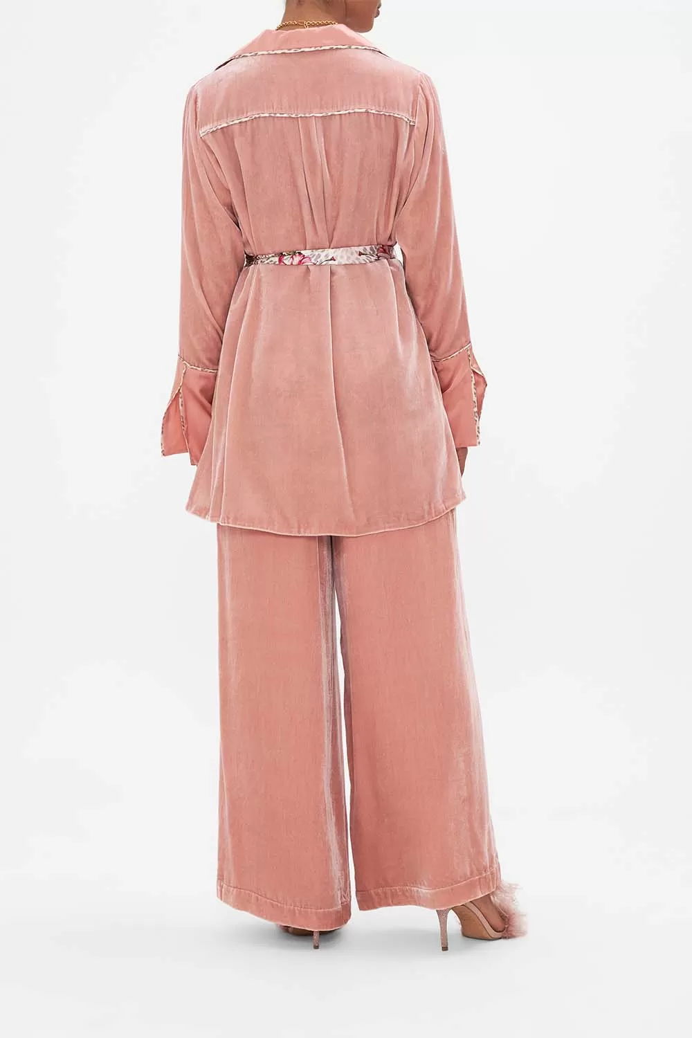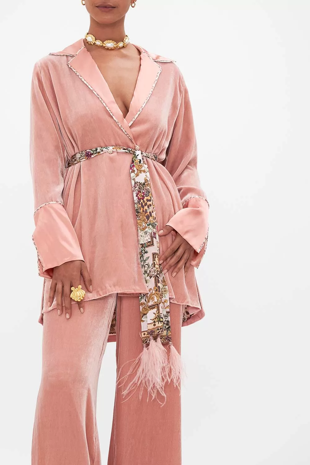 The Bambino Bliss Split Cuff Soft Jacket echoes a sweet symphony pastel pink. Crafted from a decadent CAMILLA printed silk, this luxury lightweight coat is home to embellished lapels and split cuff detail, a tie to accentuate the waist, structured shoulders to add shape and definition, and a relaxed boxy silhouette. Create a sleek matching set outfit with the Bambino Bliss Straight Leg Relaxed Trouser. Lovingly handcrafted, designed in Australia. Explore more from the Amore Mio collection.