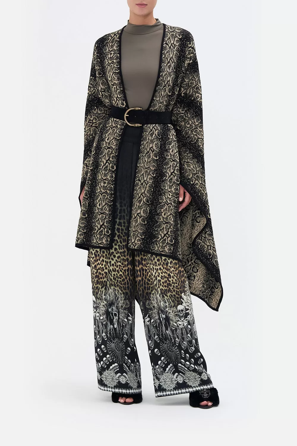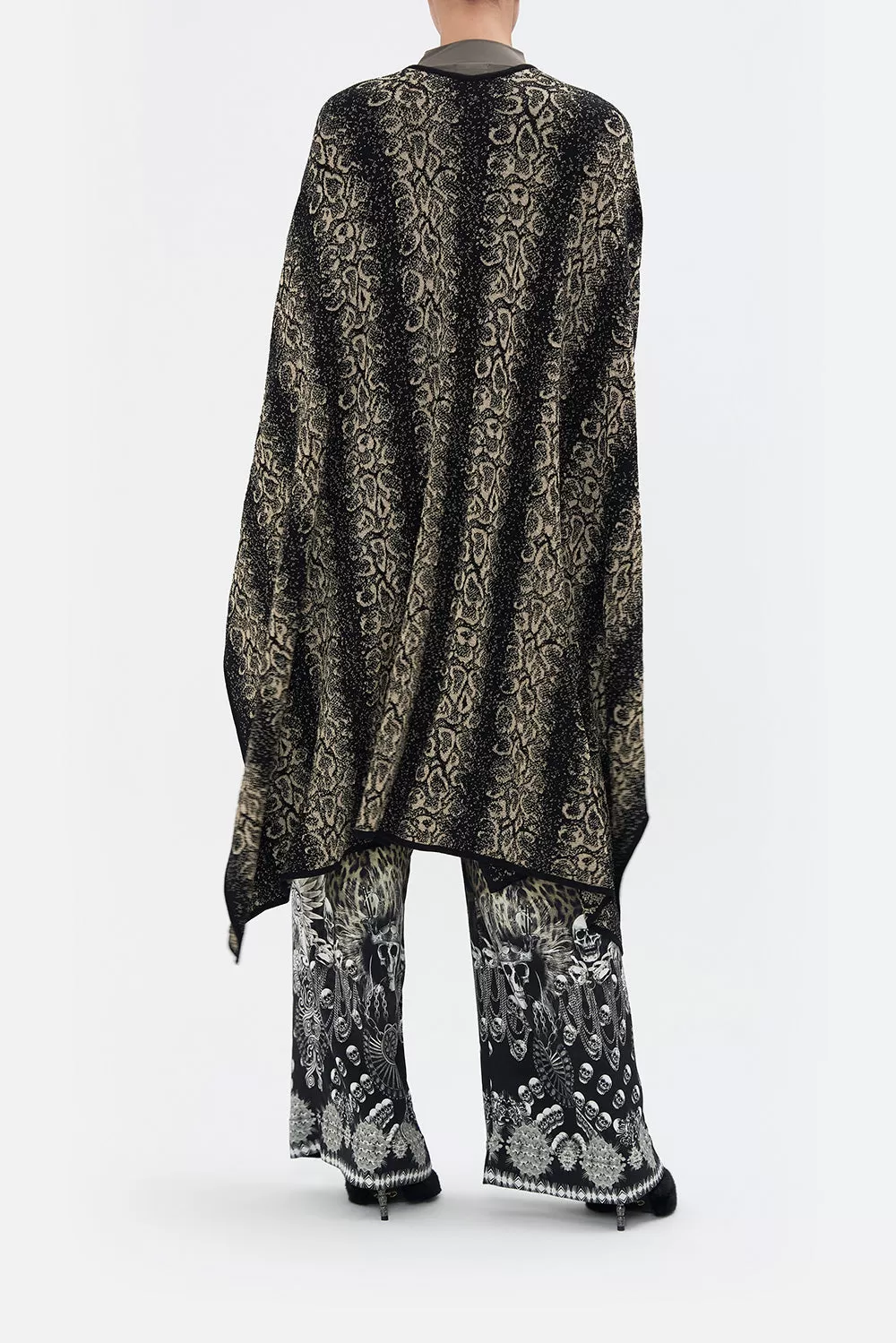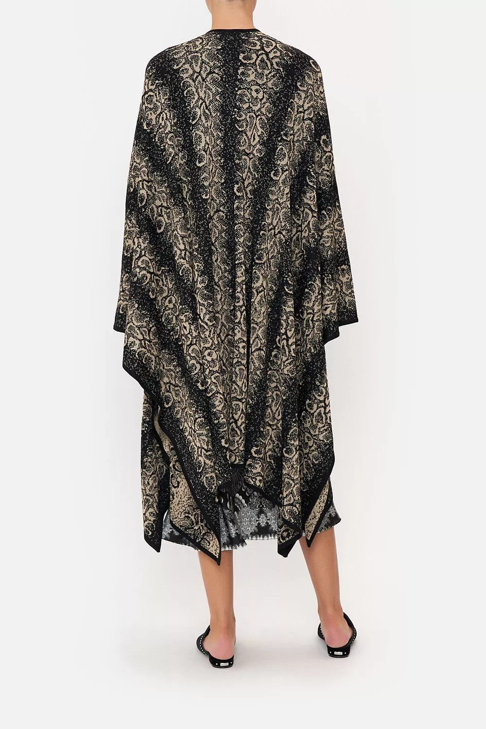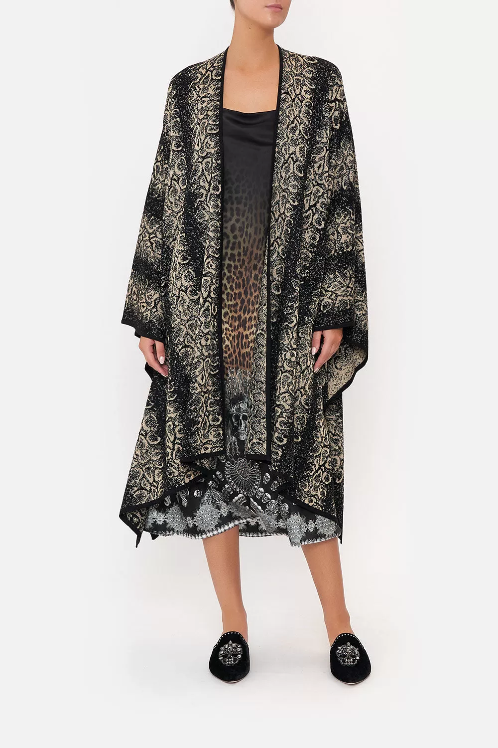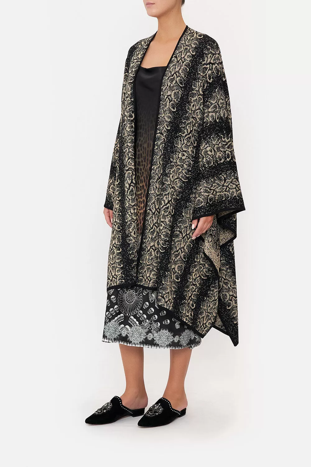 Delving into the essence of Mexico, our Order Of Disorder Throw Over captures the gaze with soft grey hues adorned with intricate jacquard detailing. Crafted from a breathable bamboo-cotton blend, this luxury throw over plays host to a wrap-style silhouette that falls into a midi handkerchief hem, hand-embellished CAMILLA crystals, jacquard accents and a relaxed cut that slips on effortlessly.