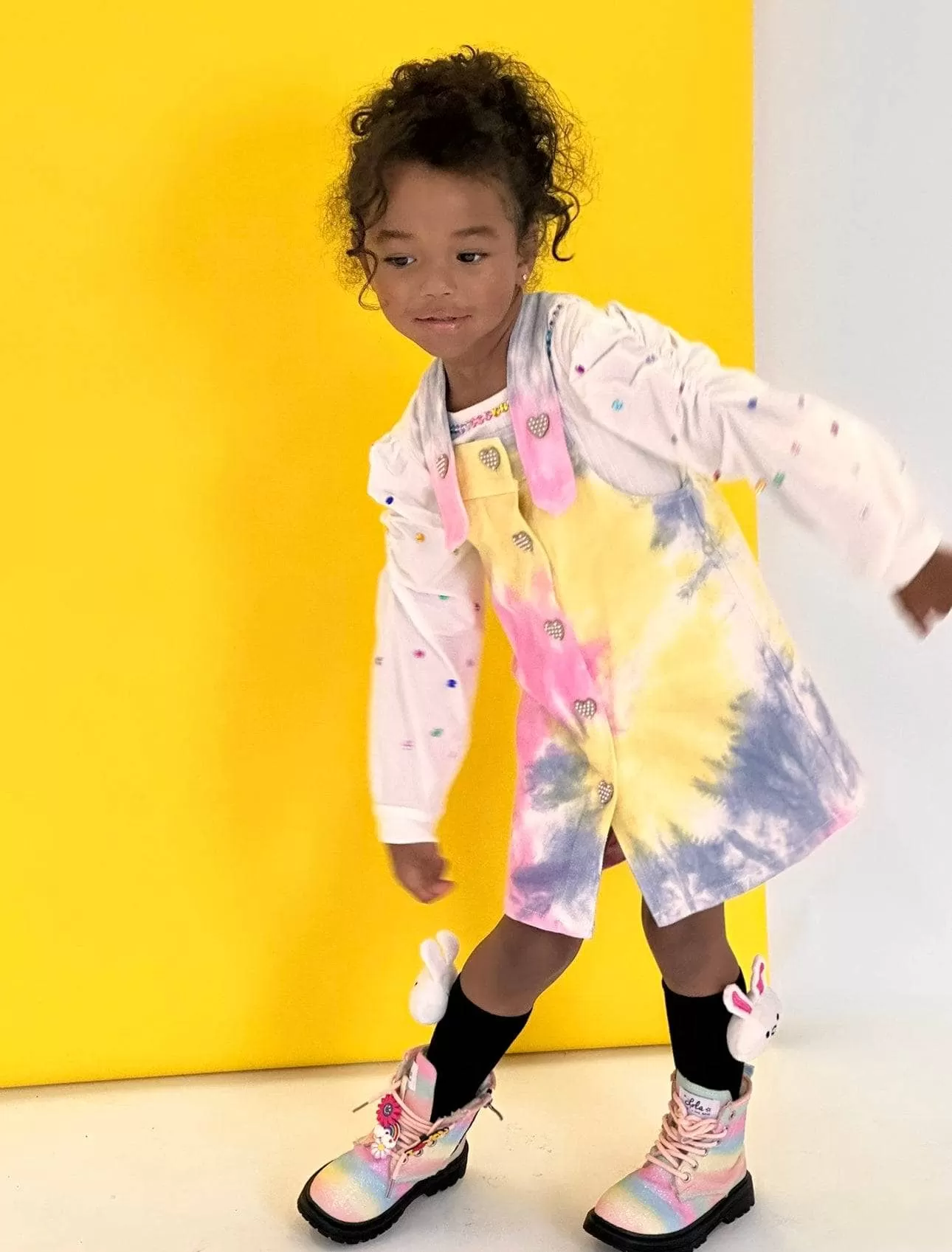 - Overall style pastel tie dye denim dress