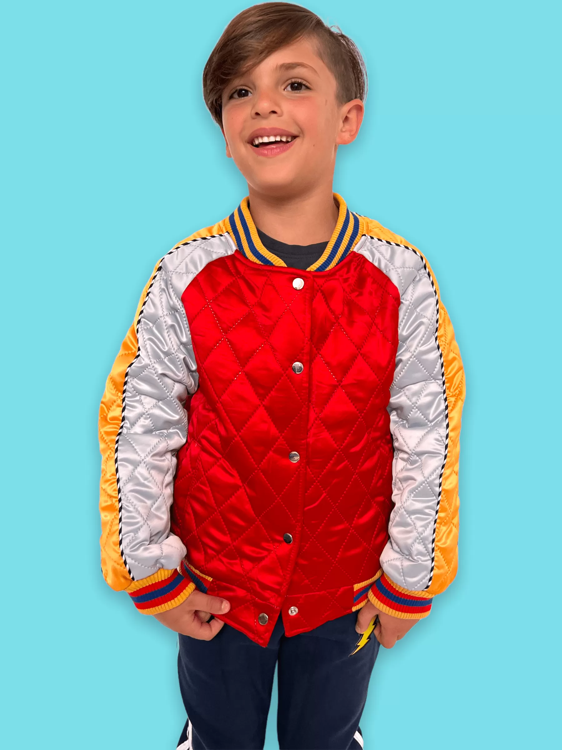 - Warm satin quilted bomber featuring an embroidered tiger on the back