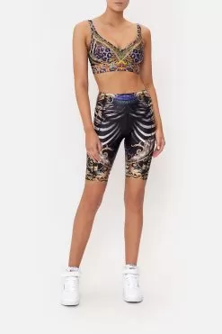 Luxe athleisure wear reimagined in an eighties homage, the Sheβs Got Grace V-Neck Active Crop steals our gaze with a cocktail of emerald hues and striking violet as classic leopard print and baroque details swirl alongside. Adorning compression support and anti-pilling technology, this luxury sports bra features a fitted silhouette, a v neckline, customisable straps and an underbust band to shape and flatter.