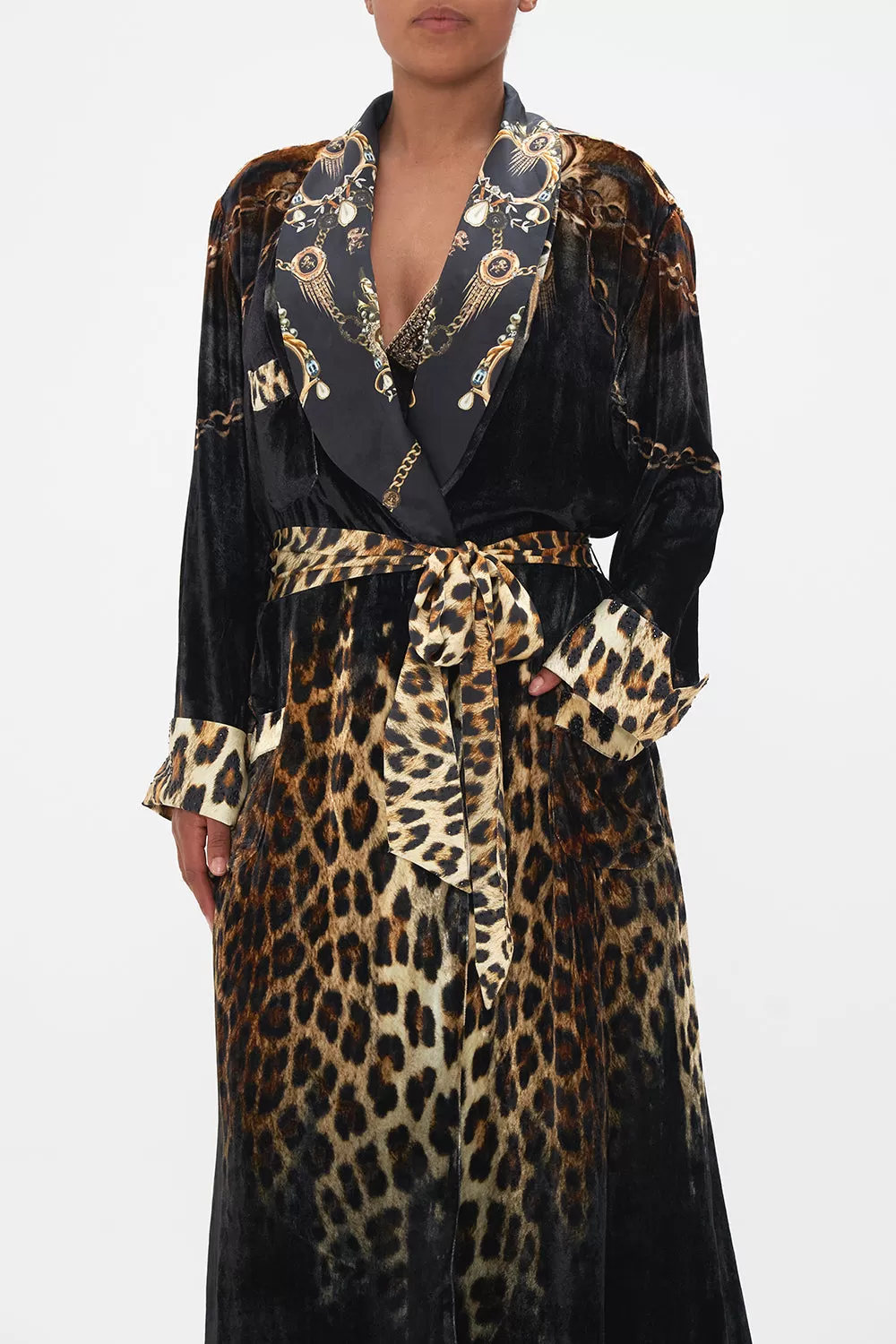 VELVET LONG ROBE WITH TIE JUNGLE DREAMING