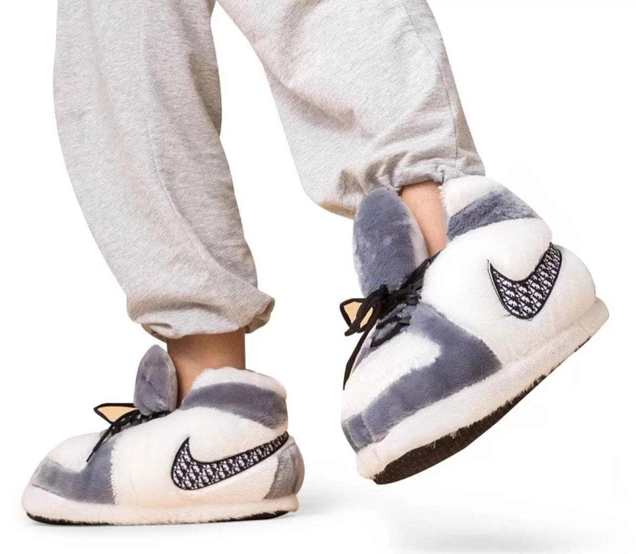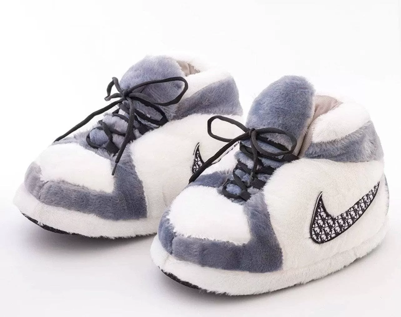 White And Grey Athletic Slippers