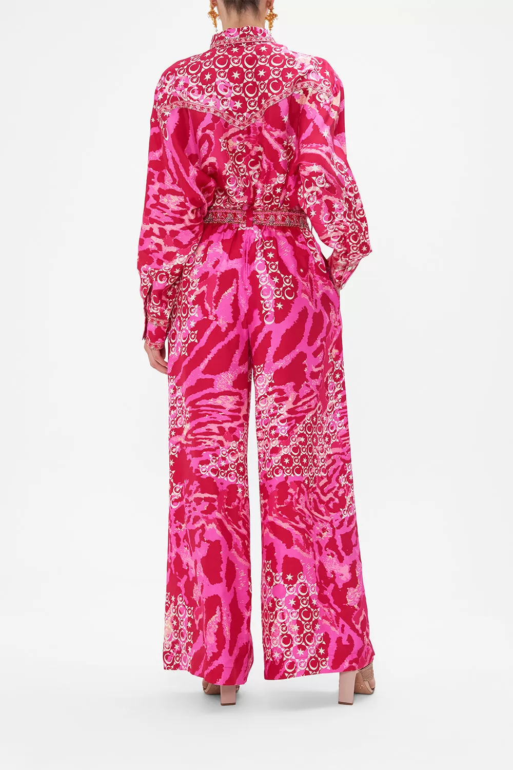 The Song Of Sacrifice Wide Leg Waisted Pant is emblazoned with vibrant pink and fuchsia hues in a dynamic symphony of wild feline and monogram motifs. Crafted for everyday elevation, these luxury pants are home to a contrasting waistband to cinch and shape, a voluminous wide leg, a full-length relaxed silhouette and pocket functionality. Lovingly handcrafted and designed in Australia, explore more from The Moral Of The Story: Act II collection.